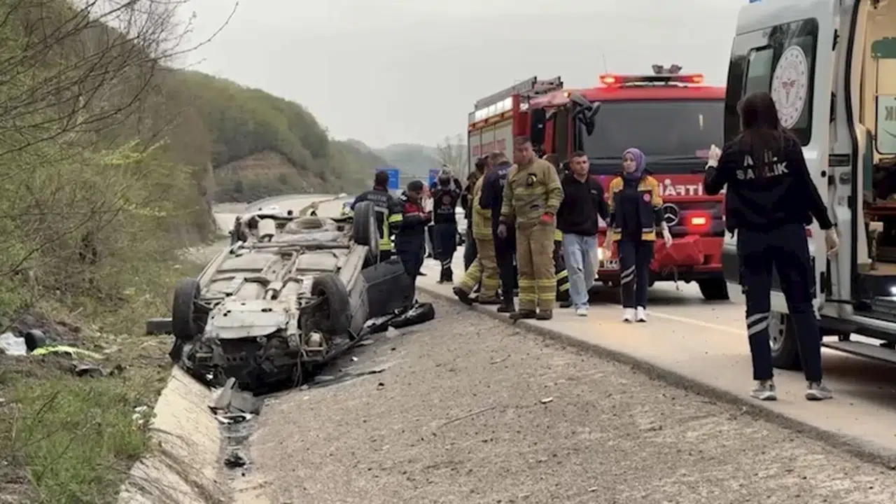 Ayhan ACAR/ BARTIN, (DHA)- BARTIN'da bayram tatili yoğunluğunun yaşandığı Amasra yolunda çarpışıp devrilen iki otomobildeki 10 kişi yaralandı.