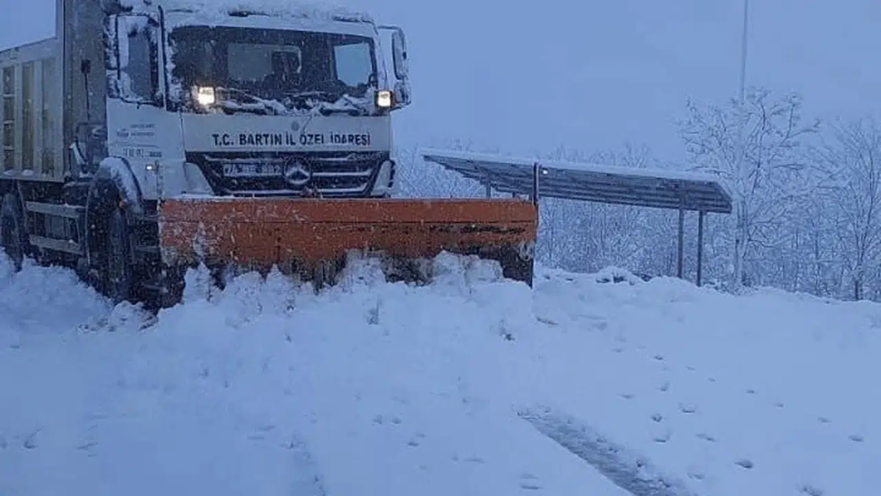 Bartın'da kar yağışı nedeniyle 34 köy yolu ulaşıma kapandı