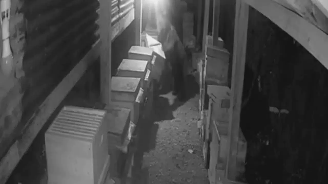 Ayı ve yavrusunun kovanları parçalaması ve balları yemesi güvenlik kamerasınca kayda alındı.