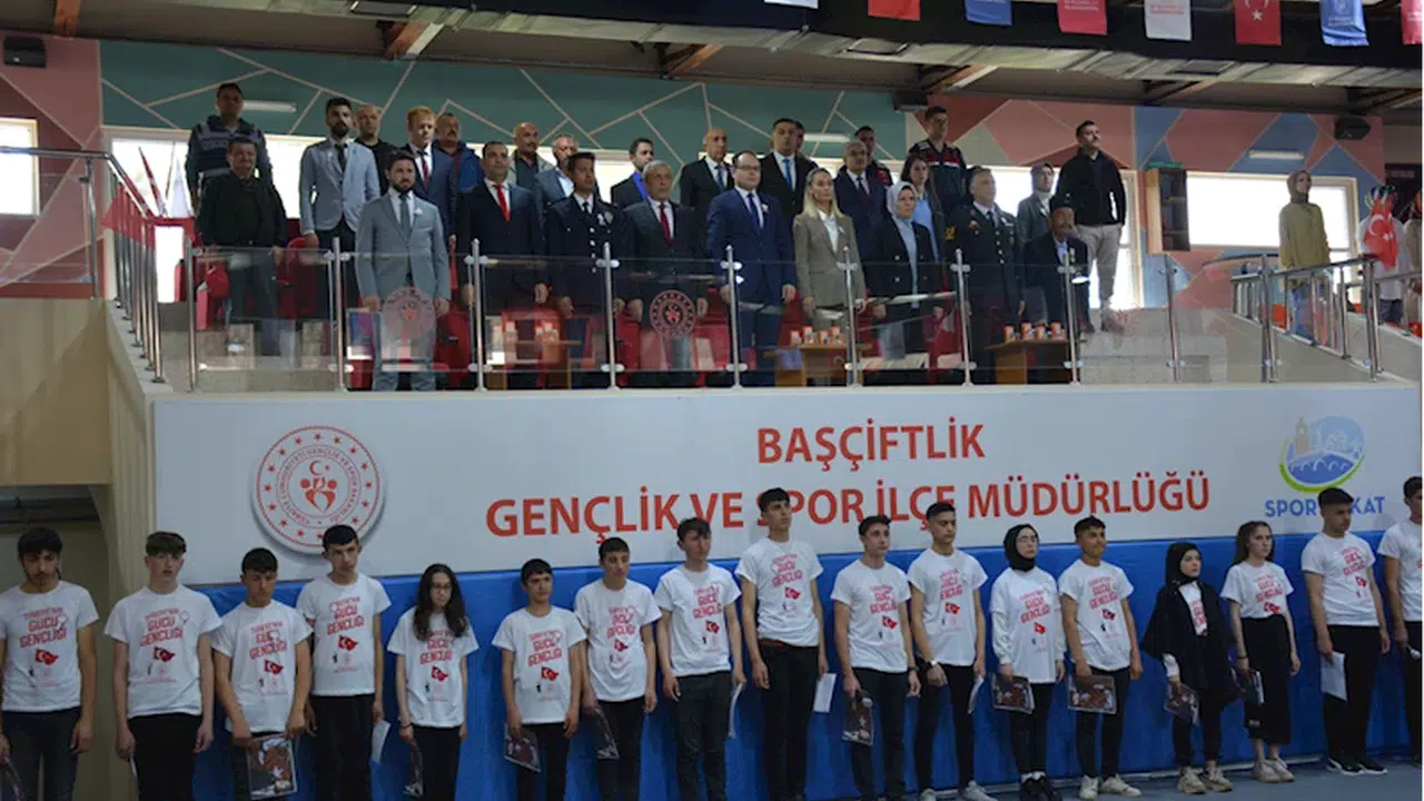 Başçiftlik'te, Atatürk Anıtı'na Gençlik ve Spor İlçe Müdürlüğü çelenginin konulmasıyla başlayan programa, Spor Salonu'nda devam edildi.