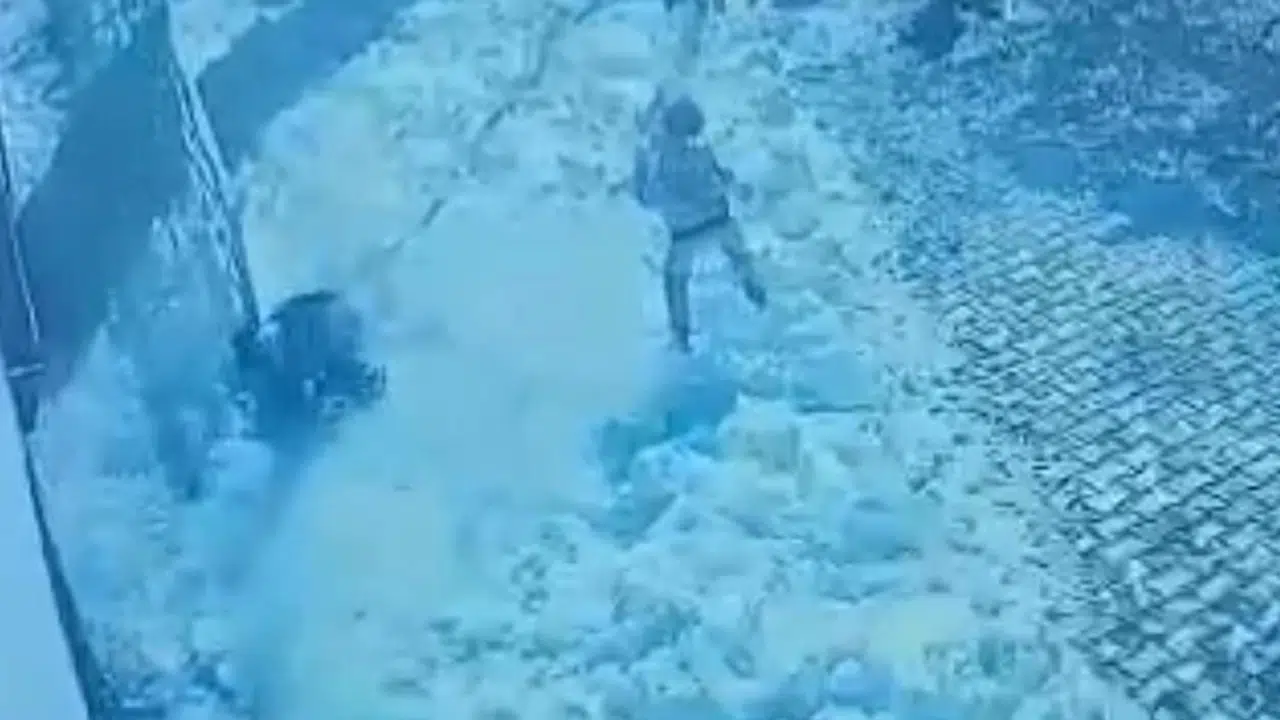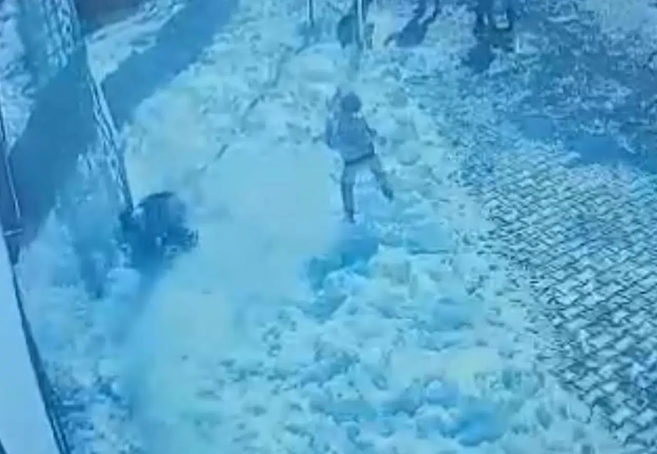 Muhammed Sami MARAL/ MUŞ, (DHA)- MUŞ’ta bir ilkokul öğrencisi, teneffüs sırasında okul bahçesinde çatıdan başına buz kütlesi düşmesi sonucu ağır yaralandı. O anlar, güvenlik kamerasına yansıdı.