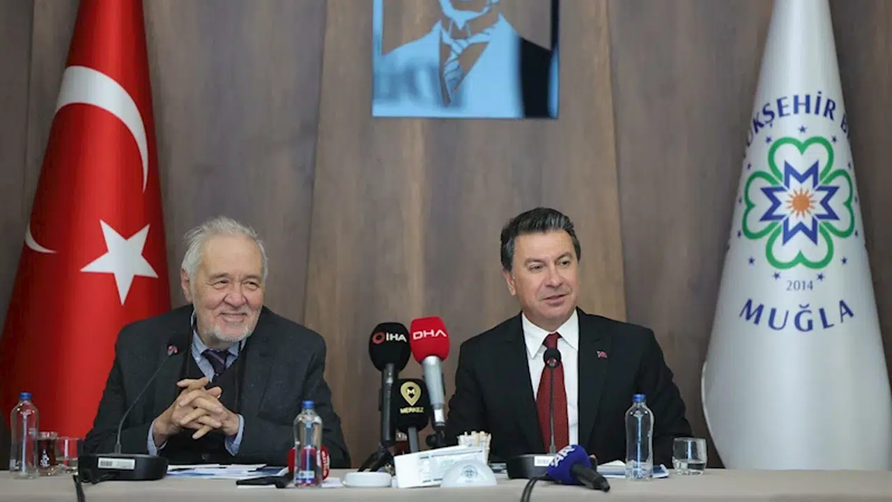 MUĞLA, (DHA)-MUĞLA Büyükşehir Belediye Başkanı Ahmet Aras, projelerini Prof. Dr. İlber Ortaylı ile birlikte tanıttı. Bu projelerle Cengiz Bektaş Kent Belleği, Atapark ve Eski Halkbank binasının modern ve yeni fonksiyonuna kavuşacağı belirtildi.
