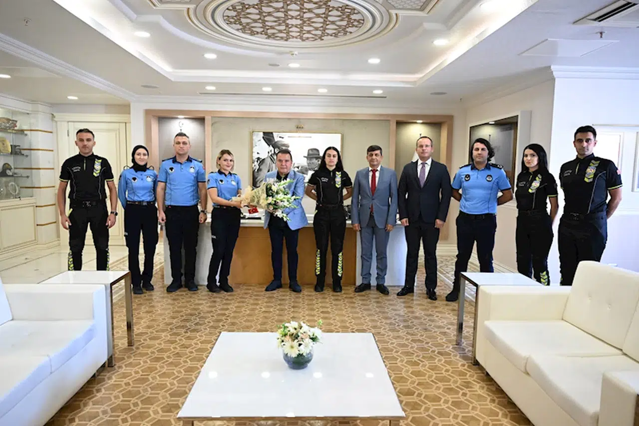 Zabıta Teşkilatı'nın kuruluşunun 198'inci yılı nedeniyle Büyükşehir Belediyesi Genel Sekreter Yardımcısı Ramazan Demir, Büyükşehir Belediyesi Zabıta Dairesi Başkanı Behiç Özdemir ve zabıta personeli, Antalya Büyükşehir Belediye Başkanı Muhittin Böcek'i ziyaret etti. Başkan Muhittin Böcek, Zabıta Teşkilatı'nın 198. yılını kutlayarak, “Gece gündüz demeden Antalya'mızda halkımızın huzur, mutluluk ve sağlığı için çalışan tüm zabıta ekiplerimize teşekkür ediyorum. Göreve geldiğimizde 139 zabıta personelimiz vardı. 26 milyona ev sahipliği yaptığımız Antalya'mızda zabıta personelimizin sayısını 293'e çıkarttık. Sizler beledimizin yüz akısınız" dedi.
