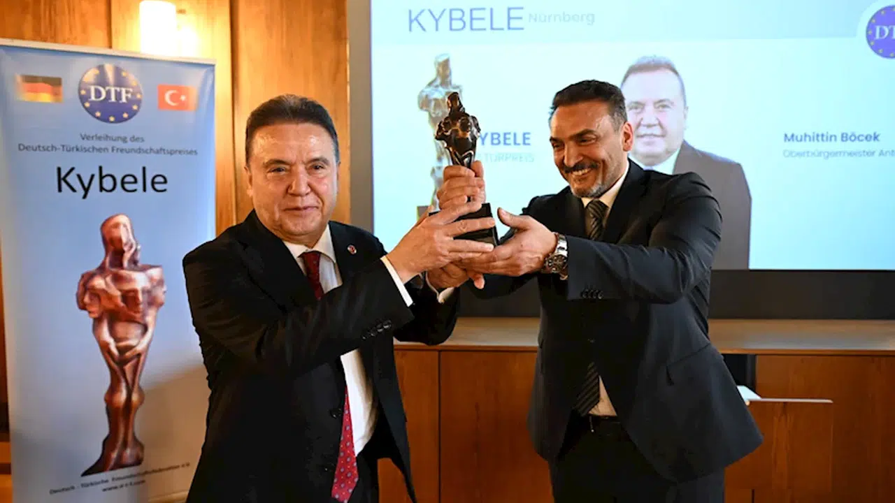 Türk- Alman Dostluk Federasyonu tarafından her yıl geleneksel olarak Türkiye ile Almanya arasında spor, ekonomi, politika ve eğitim gibi çeşitli alanlarda başarılı çalışmalar gerçekleştiren kişilere verilen 'Kybele' ödülünün sahibi bu yıl Antalya Büyükşehir Belediye Başkanı Muhittin Böcek ve Nürnberg Büyükşehir Belediye Başkanı Marcus König oldu. Nürnberg Belediye Başkanlığı binasının tarihi toplantı salonunda gerçekleşen ödül törenine, siyasiler ve ekonomi dünyasından isimler katıldı. Nürnberg Belediyesi’nin tarihi toplantı salonunda gerçekleşen ödül töreninde Antalya Büyükşehir Belediye Başkanı Muhittin Böcek ve Nürnberg Belediye Başkanı Marcus König’e ödülleri takdim edildi.