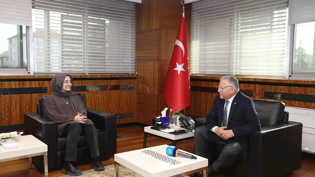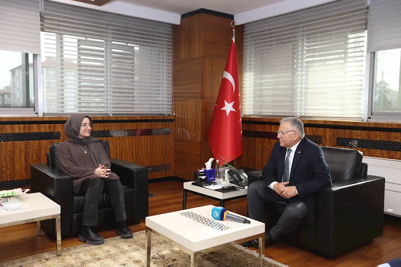 Kayseri Osman Ulubaş Fen Lisesi Müdürü Sezer İnan, mezun öğrencisi Bergüzar Yürüm ile birlikte Büyükşehir Belediye Başkanı Memduh Büyükkılıç’a nezaket ziyaretinde bulundu. Başkanlık makamında gerçekleşen ziyarette Başkan Büyükkılıç, Massachusetts Institute of Technology’den kabul alan tek Türk öğrenci olan Bergüzar’ı ve ailesini tebrik etti. Başkan Büyükkılıç, “Kayseri’mizin ve ülkemizin gururu oldunuz. Sizlere yardımcı olmak, sizlerin ufkunu açacak, hedefine destek olacak şekilde hareket etmek hepimize yakışır, bizler de şehrin hizmetkarı olarak hem sizlerle onur duyuyoruz hem de dua ediyoruz. Üzerimize düşen bir şey varsa buradan paylaşıyoruz” diye konuştu.
