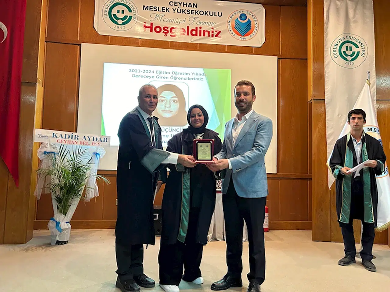Mezuniyet töreni, üniversitenin konferans salonunda gerçekleştirildi. Törende konuşma yapan Çukurova Üniversitesi Ceyhan Meslek Yüksekokulu Müdürü Prof. Dr. Deniz Yıldırım, mezun olan öğrencileri tebrik ederek başarılar diledi. Prof. Dr. Yıldırım, öğrencilerin aldıkları eğitimle geleceklerine güvenle bakmalarını temenni etti. Ceyhan Kaymakamı Ramazan Kurtyemez'in de katıldığı mezuniyet töreninde okul birinci ismini 2023-2024 eğitim öğretim yılı birincisi olarak yaş kütüğüne çaktı. Üniversiteden mezun olan öğrencilere diplomalarını veren Ceyhan Belediye Başkanı Kadir Aydar, meslek hayatlarında başarılar diledi. Tören sonrasında öğrencilerle sohbet eden ve hatıra fotoğrafları çektiren Aydar, öğretmenlerine kampüsün eksiklerini gidereceğinin sözünü verdi. Mezuniyet töreni, öğrencilerin ve ailelerinin katılımıyla coşkulu bir şekilde sona erdi. (DHA)