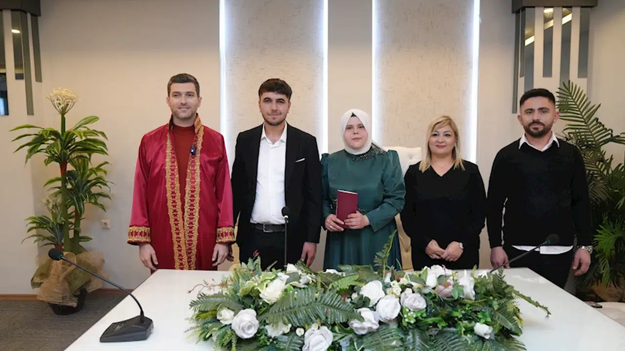 Çok mutlu olduklarını belirten damat Dursun Kurtgöz, “Nikahımızı başkan beyin kıyacağından haberimiz yoktu. Çok mutlu olduk böyle bir günde bizi yalnız bırakmadığı için. Bugün 14 şubat nikahımızı bu güne kaldık. Her zaman aklımızda kalacak bir tarih. Biz çok mutluyuz” İfadelerini kullandı.