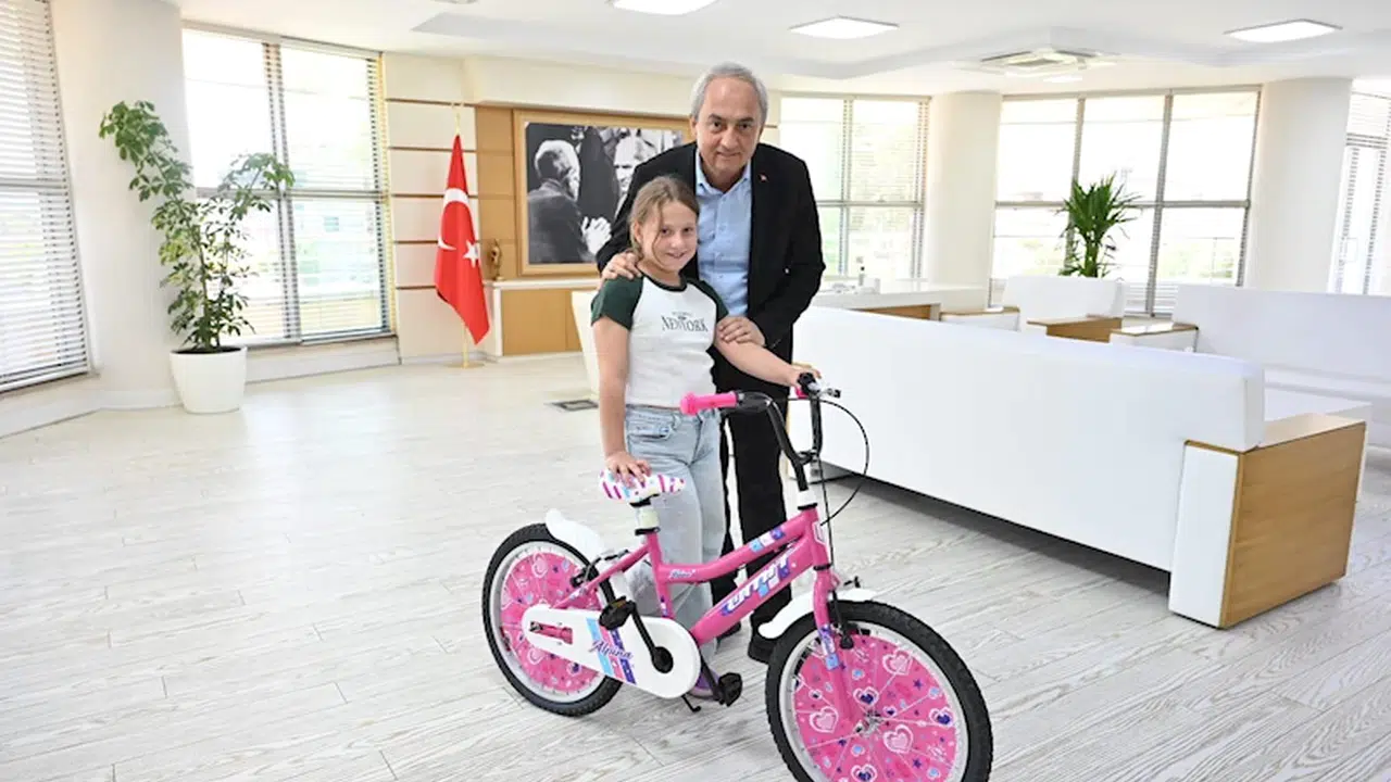 Başkan Kocagöz'den küçük Seher'e bisiklet