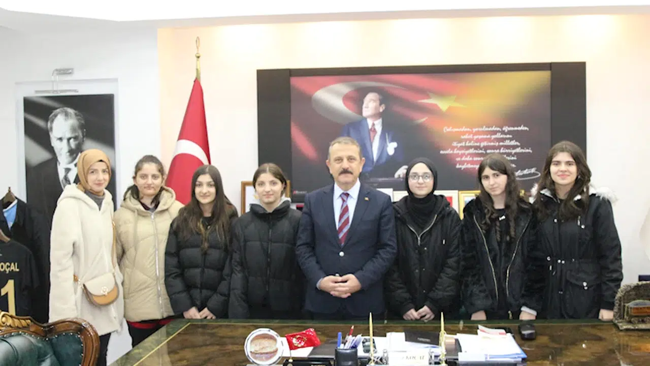 Vakfıkebir Fen Lisesi öğrencilerinden Havvanur Kıdık, Ela Bilgin, Sude Üçüncü, Havva Melike Tunç, Elif Bekar ve Tuana Demir danışman öğretmenleri Ayşe Yıldız Akay Belediye Başkanı Fuat Koçal’ı ziyaret etti. Çevre kirliliğini azaltmak için atık malzeme ve doğal mantardan ses izolasyonunda kullanılan akustik panel üretimi projesini anlatan öğrencilere Başkan Koçal, doğa dostu projeye hissedar olarak destek verdi.