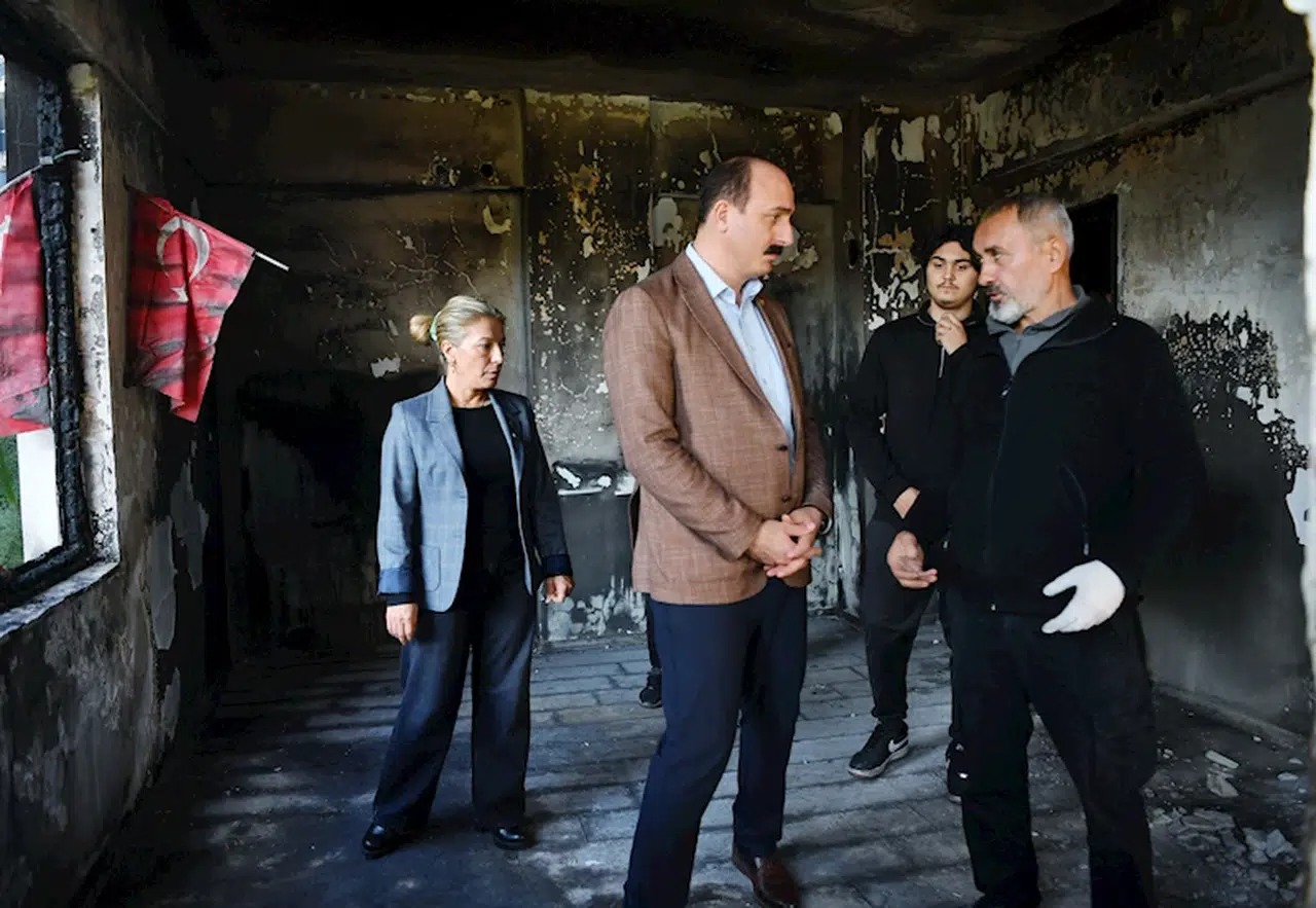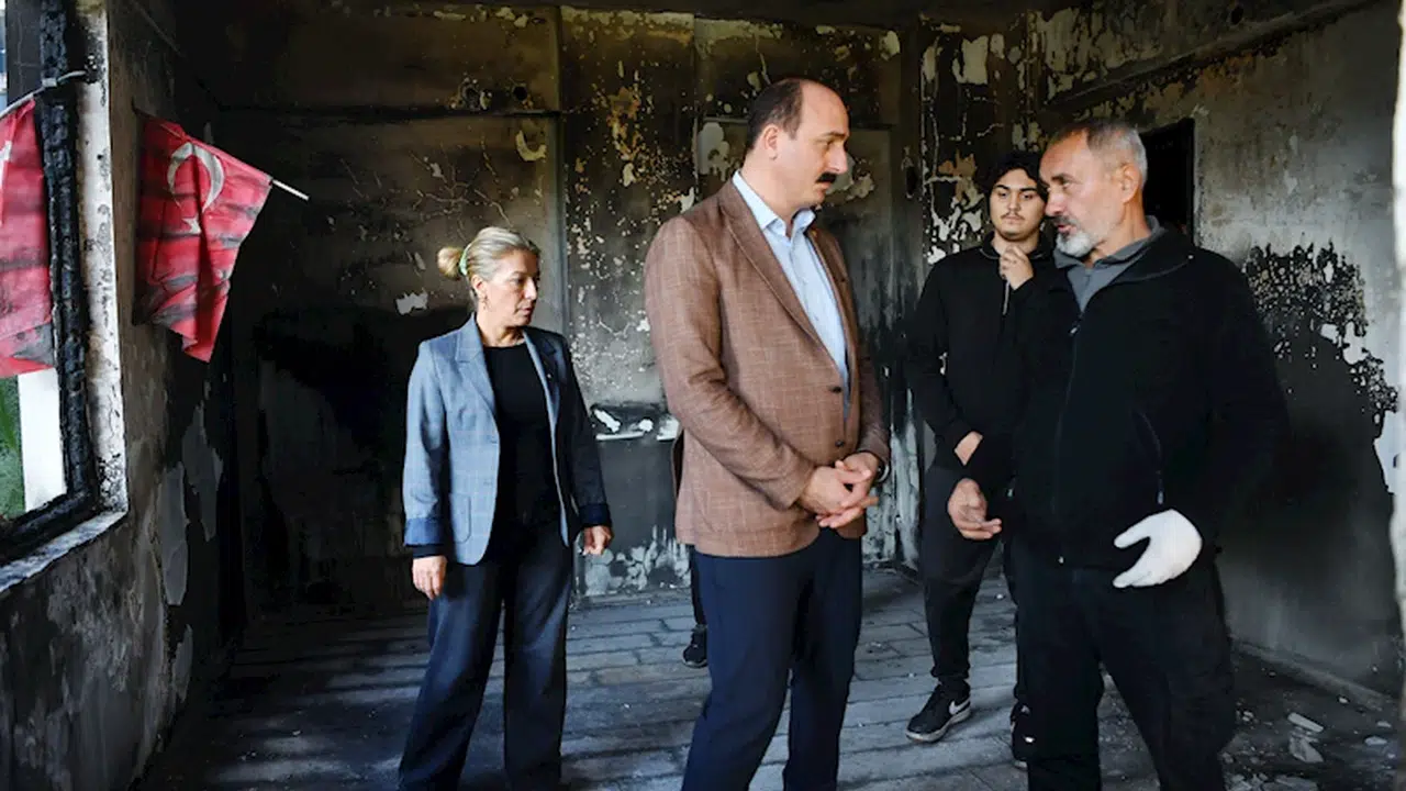 ANTALYA, (DHA) - KONYAALTI Belediye Başkanı Cem Kotan, Gürsu Mahallesi’nde çıkan yangın sonucu evi yanan aileye geçmiş olsun ziyaretinde bulundu. Başkan Kotan, "Ailemizin yaralarını hep birlikte saracağız" dedi.