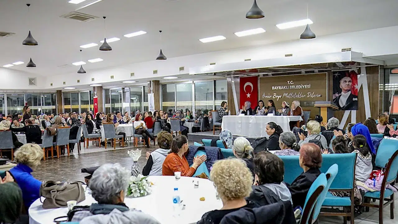 Bayraklı Belediyesi, Kadına Yönelik Şiddete Karşı Uluslararası Mücadele Günü dolayısıyla farkındalık oluşturmayı amaçlayan çeşitli etkinlikler düzenledi. Etkinliğe Başkan İrfan Önal'ın yanı sıra meclis üyeleri ve yüzlerce Bayraklılı kadın katıldı. Havuz Düğün Salonu'nda gerçekleştirilen 'Güçlü Kadınlar Güvenli Yarınlar' başlıklı söyleşide Sosyolog Sibel Özel, şiddetin türlerini ve etkilerini anlattı. Bayraklı ve İzmir Büyükşehir Belediyesi Meclis Üyesi Avukat İpek Kul, kadınlara sunulan destek mekanizmaları ve hak arama yolları hakkında bilgi verdi. Moderatörlüğünü Psikolog Gülhan Beşkazalıoğlu'nun üstlendiği panelde, ekonomik ve psikolojik olarak güçlenmiş kadınlar, yaşadıkları zorlukların üstesinden nasıl geldiklerini katılımcılarla paylaştı. Ayrıca, İzmir Büyükşehir Belediyesi Kadın Çalışmaları Şube Müdürlüğü ve Bayraklı Belediyesi iş birliğiyle düzenlenen etkinlikte ise kadınlar Doğançay Mahallesi Köy Kahvesi'nde bir araya geldi. Kadın Çalışmaları Sinema Atölyesi'nin hazırladığı farkındalık filmi gösteriminin ardından, toplumsal cinsiyet eşitliği üzerine söyleşi gerçekleştirildi. Onur Mahallesi Atatürk Açıkhava Tiyatrosu ve Nafiz Gürman Mahallesi Taziyeevi'nde de 'Kadın ihmal ve istismar' konulu bilgilendirme seminerinde ilçe sakini kadınlar bir araya geldi.