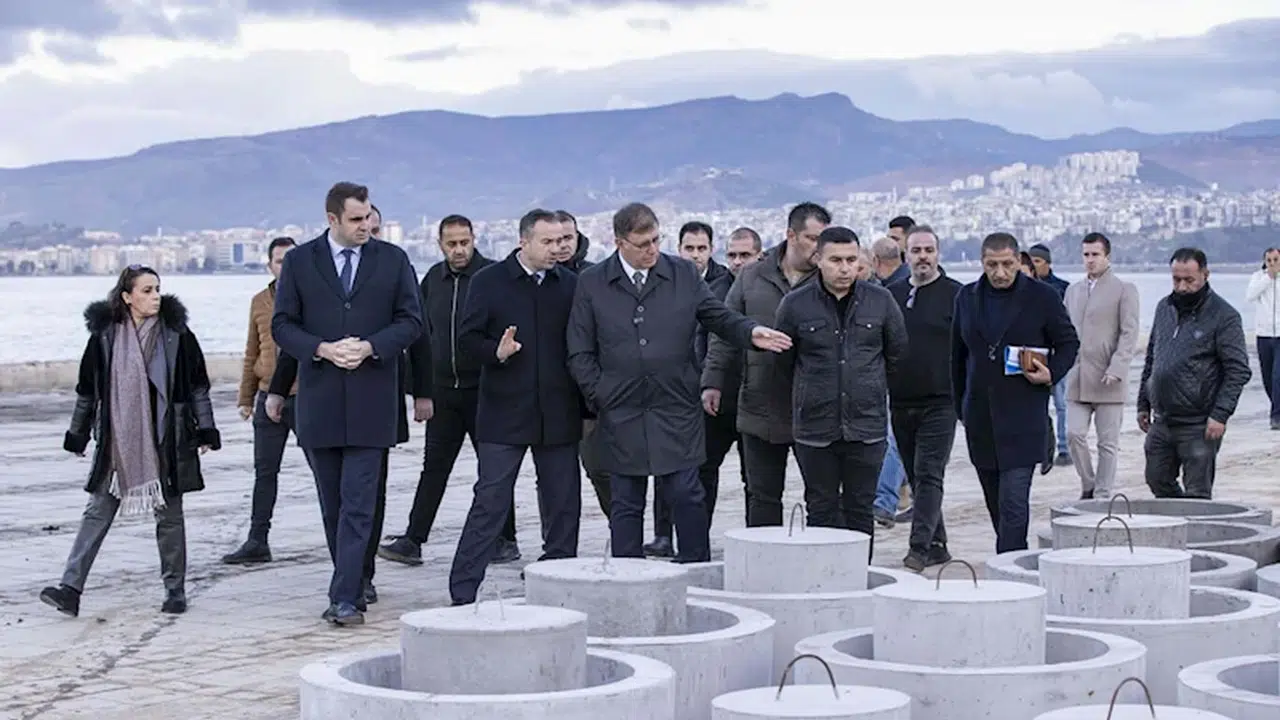İzmir Büyükşehir Belediye Başkanı Cemil Tugay, Alsancak Kordon'da deniz taşkınlarını önlemek için başlatılan, aynı zamanda sosyal donatı alanlarıyla kıyı şeridindeki sorunları çözerek estetik bir görünüme kavuşturacak 'Kordon Acil Eylem Paketi' çalışmalarını yerinde inceledi. Alsancak Limanı'ndan Cumhuriyet Meydanı'na kadar uzanan çalışma hakkında sahada bilgi alan Tugay'a İzmir Büyükşehir Belediyesi Genel Sekreter Yardımcısı Çağatay Güç, Fen İşleri Dairesi Başkanı Sercan Kahya, Yapı İşleri Dairesi Başkanı Onur Açık, Park ve Bahçeler Dairesi Başkanı Müge Deniz Bal ve birim yöneticileri eşlik etti. Kordon boyunca yürüyen Başkan Tugay, alanda yapımı tamamlanan geçici fırtına duvarını, acil durum kapılarını, zemin ve peyzaj düzenlemelerini inceledi.