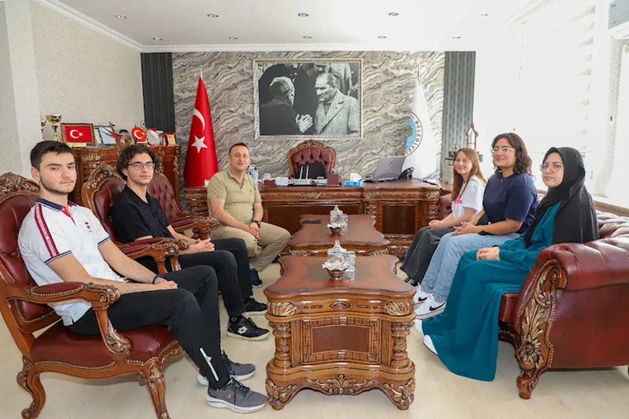 Fatih YILMAZ/Tokat,(DHA) - TOKAT'ın Turhal Belediye Başkanı Erdem Ural, Yükseköğretim Kurumları Sınavı (YKS) sonuçlarına göre ilçe genelinde alanlarında birinci olan öğrencileri makamında ağırladı.