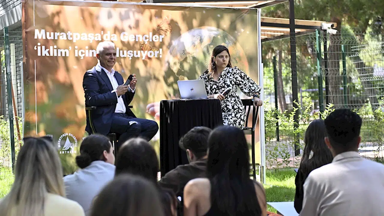Başkan Uysal, Sosyal İklim Derneği ve Akdeniz Üniversitesi Edebiyat Fakültesi Coğrafya Bölümü öğrencileriyle 'iklim krizi' başlıklı söyleşide bir araya geldi. Söyleşide gençler, etüt merkezinin bahçesinde dev minderler üzerinde oturup Uysal'a sorular da yöneltti.