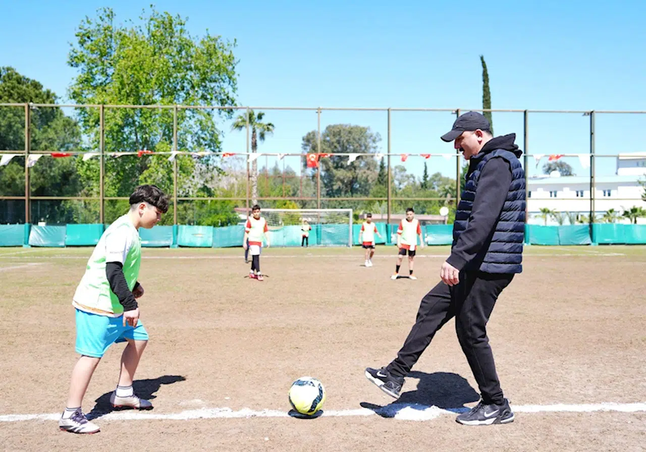 ANTALYA, (DHA) - KONYAALTI Belediyesi, 23 Nisan Ulusal Egemenlik ve Çocuk Bayramı kapsamında çocuklar için futbol ve tenis turnuvası düzenliyor. Konyaaltı Atatürk Stadı'nda düzenlenen futbol turnuvasının açılış törenine katılarak ilk maçın başlama vuruşunu yapan Başkan Cem Kotan, HayatPark'ta devam eden tenis turnuvasını da ziyaret ederek çocuk sporcularla sohbet etti.