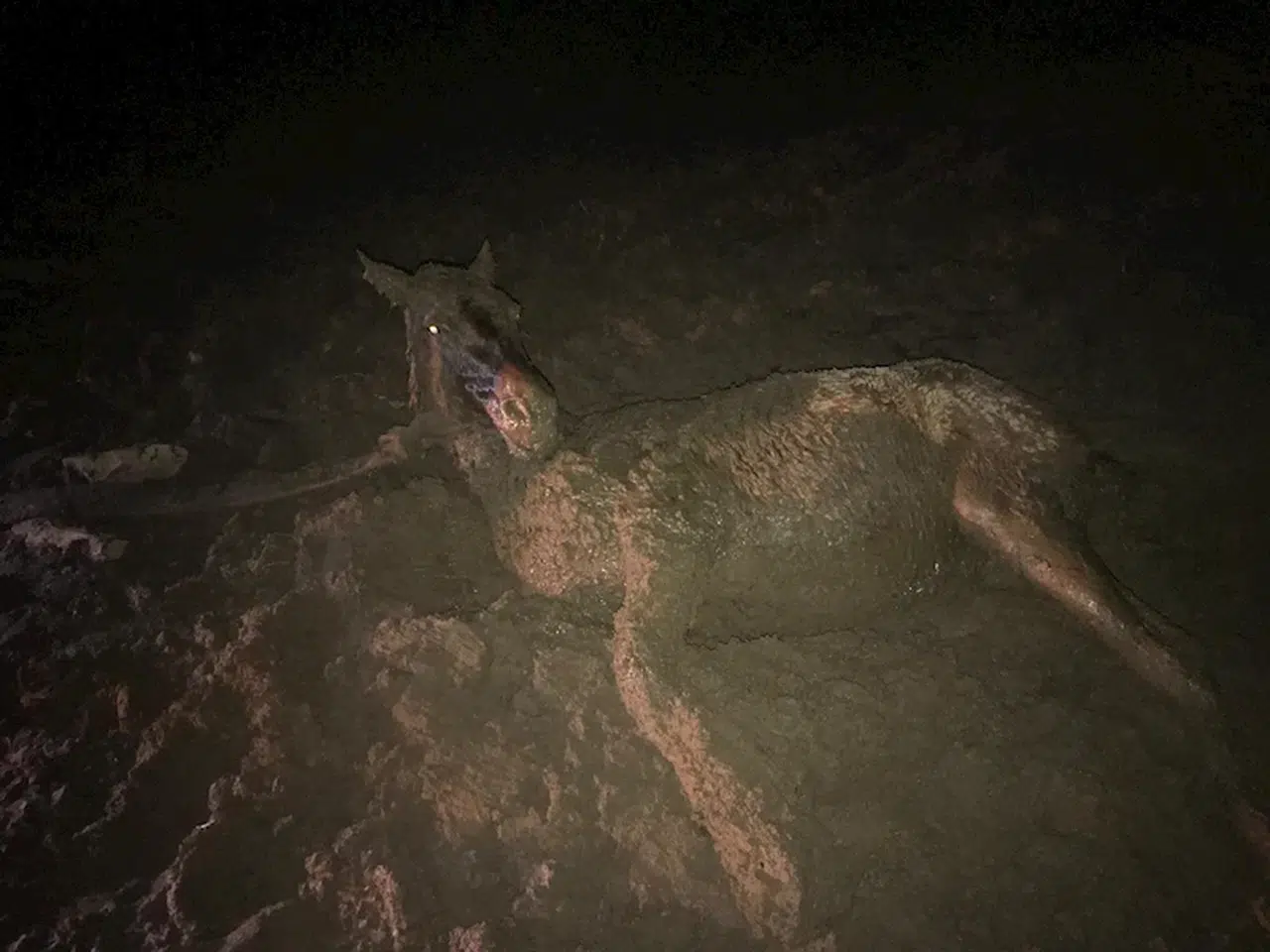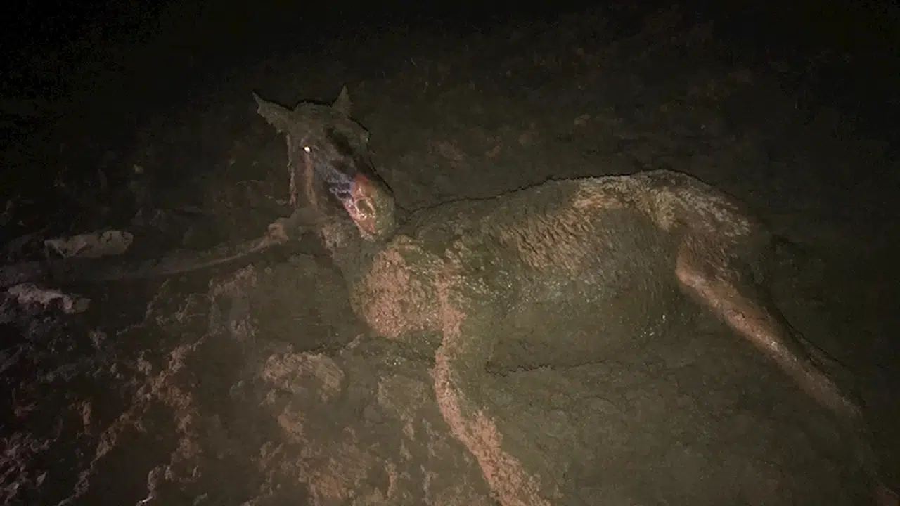 Bataklığa saplanan yılkı atı, 4 saatte kurtarıldı