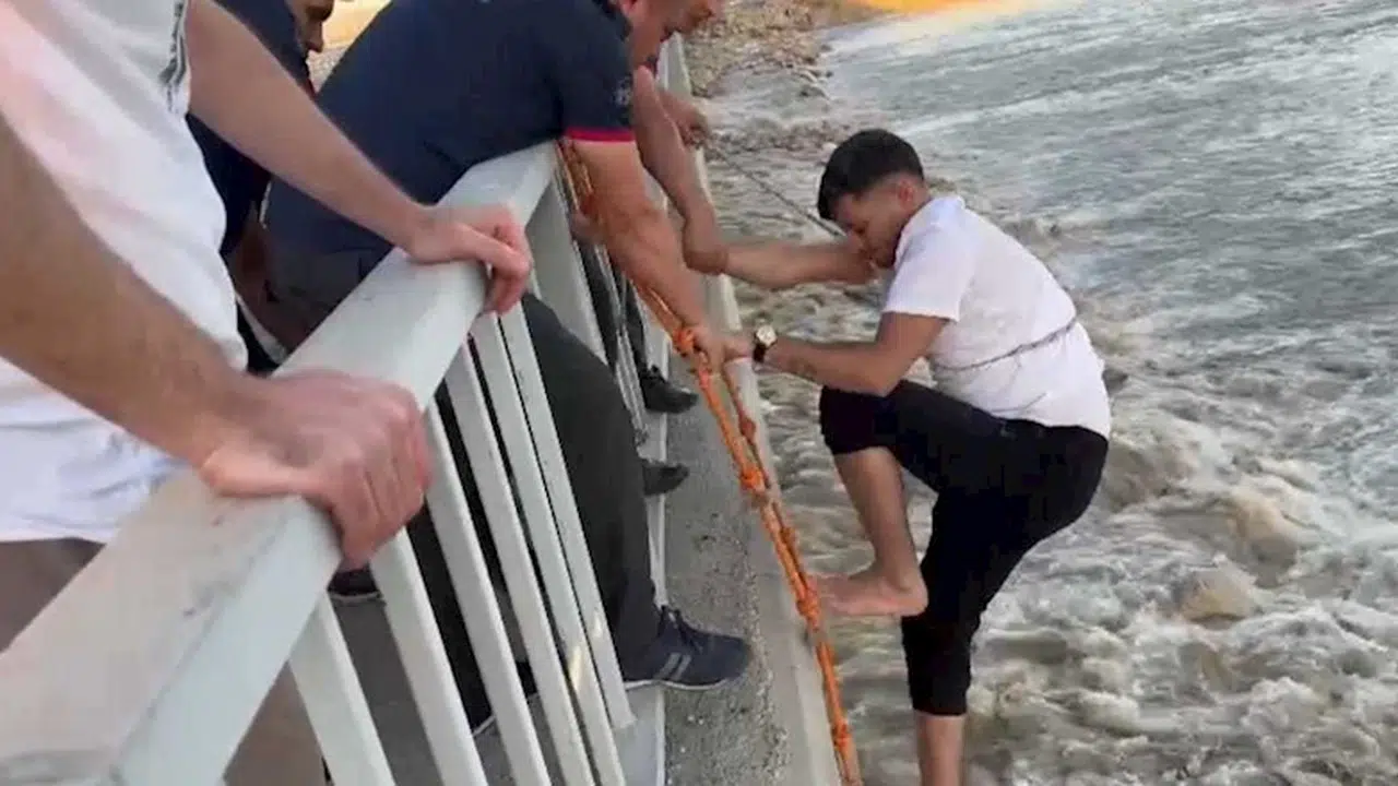 Balık tutmak için kent girişinde bulunan Batman Köprüsü’nün altındaki Batman Çayı’na giden 2 kişi, suların yükselmesi sonucu çayda mahsur kaldı. Kendi imkanları ile çıkamayan kişiler, durumu 112 Acil Çağrı Merkezi’ne bildirdi. Olay yerine sevk edilen itfaiye ekipleri, köprüden aşağıya indirdiği halat merdivenle mahsur kalanları kurtardı.(DHA)