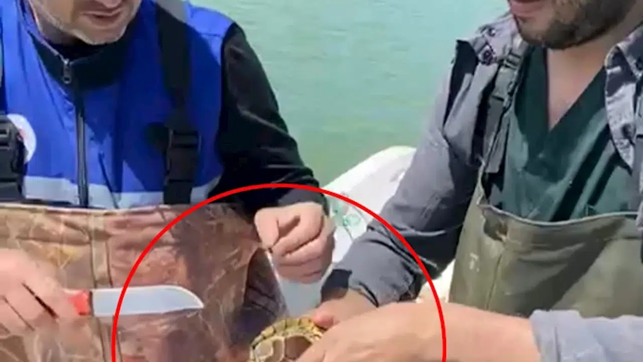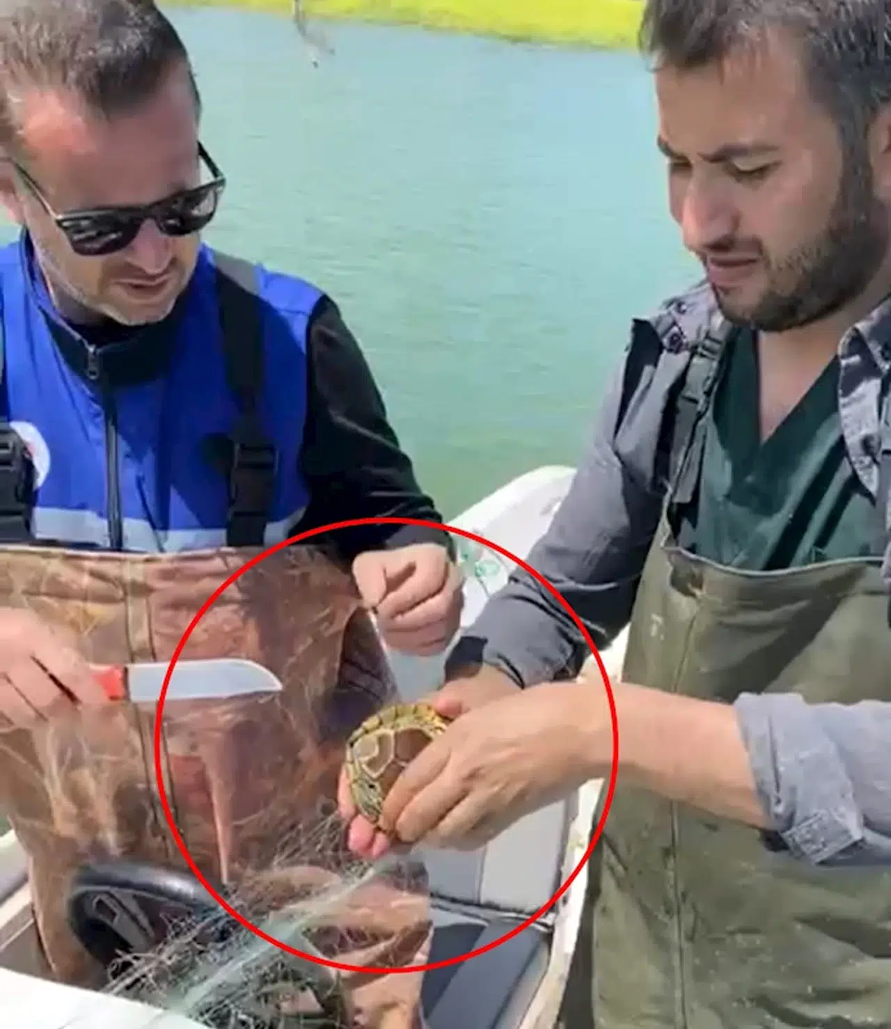 Bayram AYHAN/BATMAN, (DHA)- BATMAN’da, kaçak balık avcılığı için baraj gölüne bırakılan 2500 metre sahipsiz hayalet ağ ekipler tarafından toplandı. Ağa takılan yavru su kaplumbağası, kurtarılarak suya geri bırakıldı.