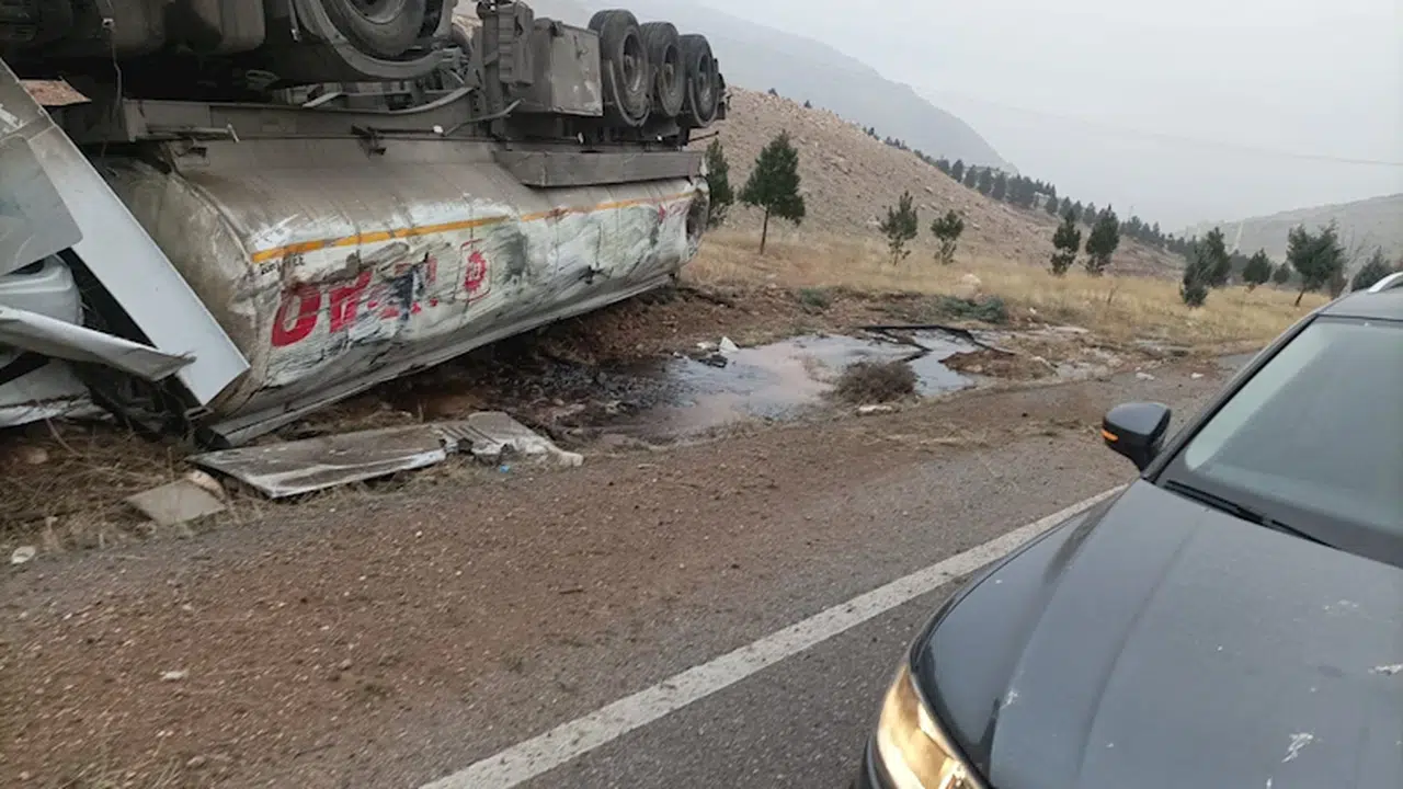 Batman'da devrilen tankerin şoförü yaralandı, dökülen ham petrol etrafa saçıldı