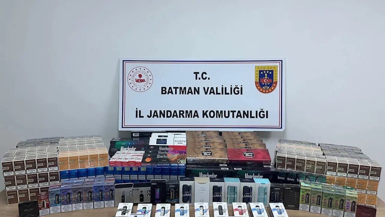 Bayram AYHAN/BATMAN, (DHA)- BATMAN'da jandarma ekipleri tarafından düzenlenen kaçakçılık operasyonunda 5 bin 130 paket sigara, 33 elektronik sigara ve 32 tütün ısıtma cihazı ele geçirildi.