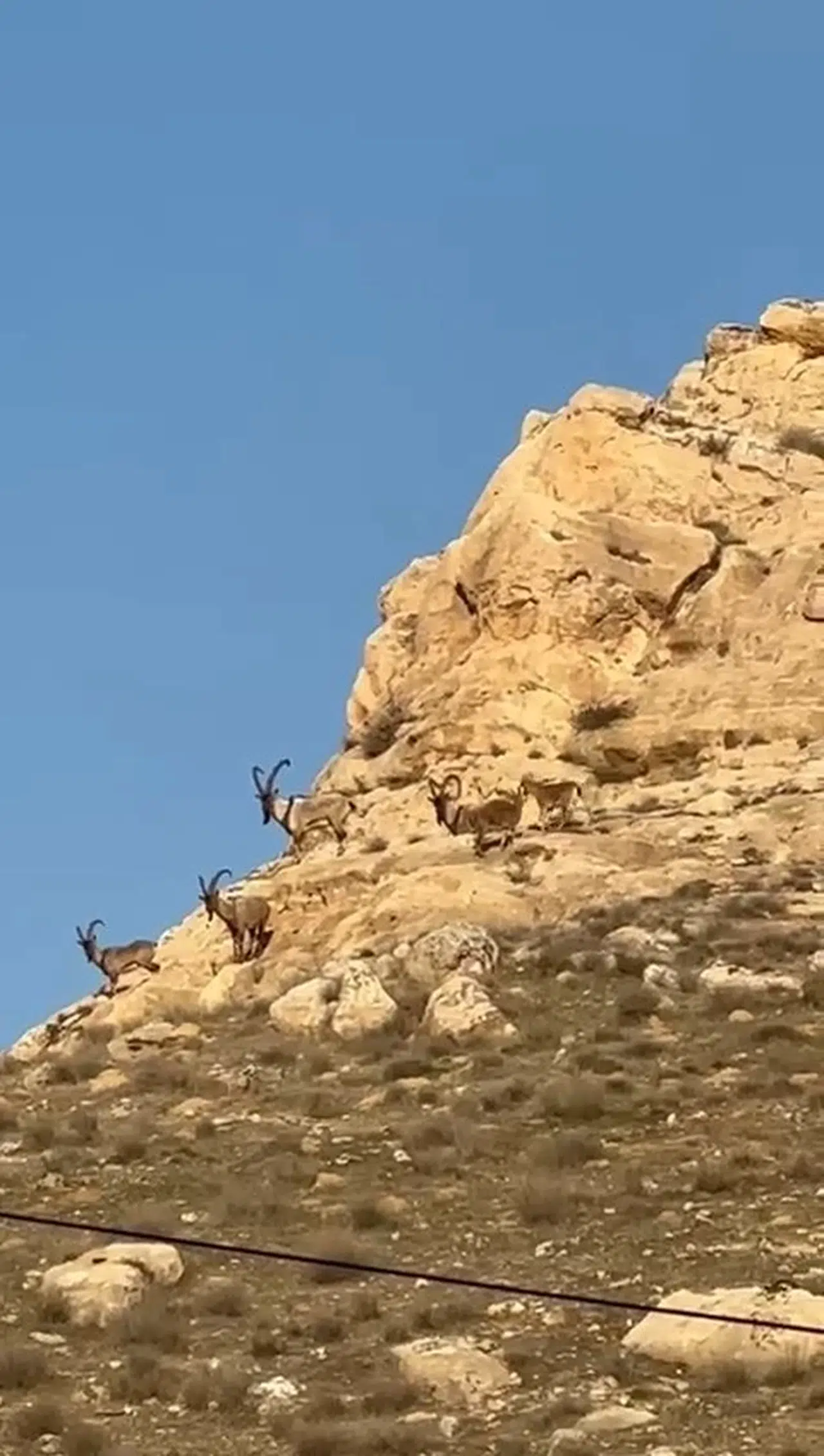 Doğa Koruma ve Milli Parklar Müdürlüğü ekipleri, yaşadıkları bölgeleri fotokapanla takip ettikleri sırada, kayalıklarda koruma altındaki dağ keçilerinin olduğunu fark etti. Ekipler, kayalıklara tırmanan dağ keçilerini cep telefonu kamerasıyla görüntüledi. Bir süre çevrede dolaşan dağ keçileri, daha sonra gözden kayboldu. (DHA)
