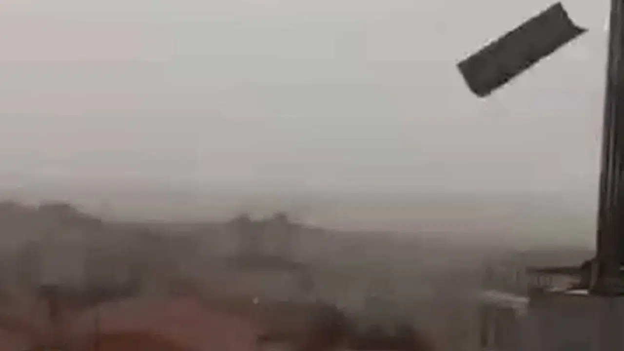 Kentte akşam saatlerinde kısa süreli etkili olan sağanak ve kuvvetli rüzgar nedeniyle bazı noktalarda ağaçlar kırılırken, bir binanın çatısından da metal parçalar uçtu. O anlar cep telefonu kamerasıyla kayıt altına alındı. Düşen parçaların kimseye isabet etmemesi, olası bir kazayı önledi. Belediye ekipleri, bölgede temizlik çalışması başlattı. (DHA)