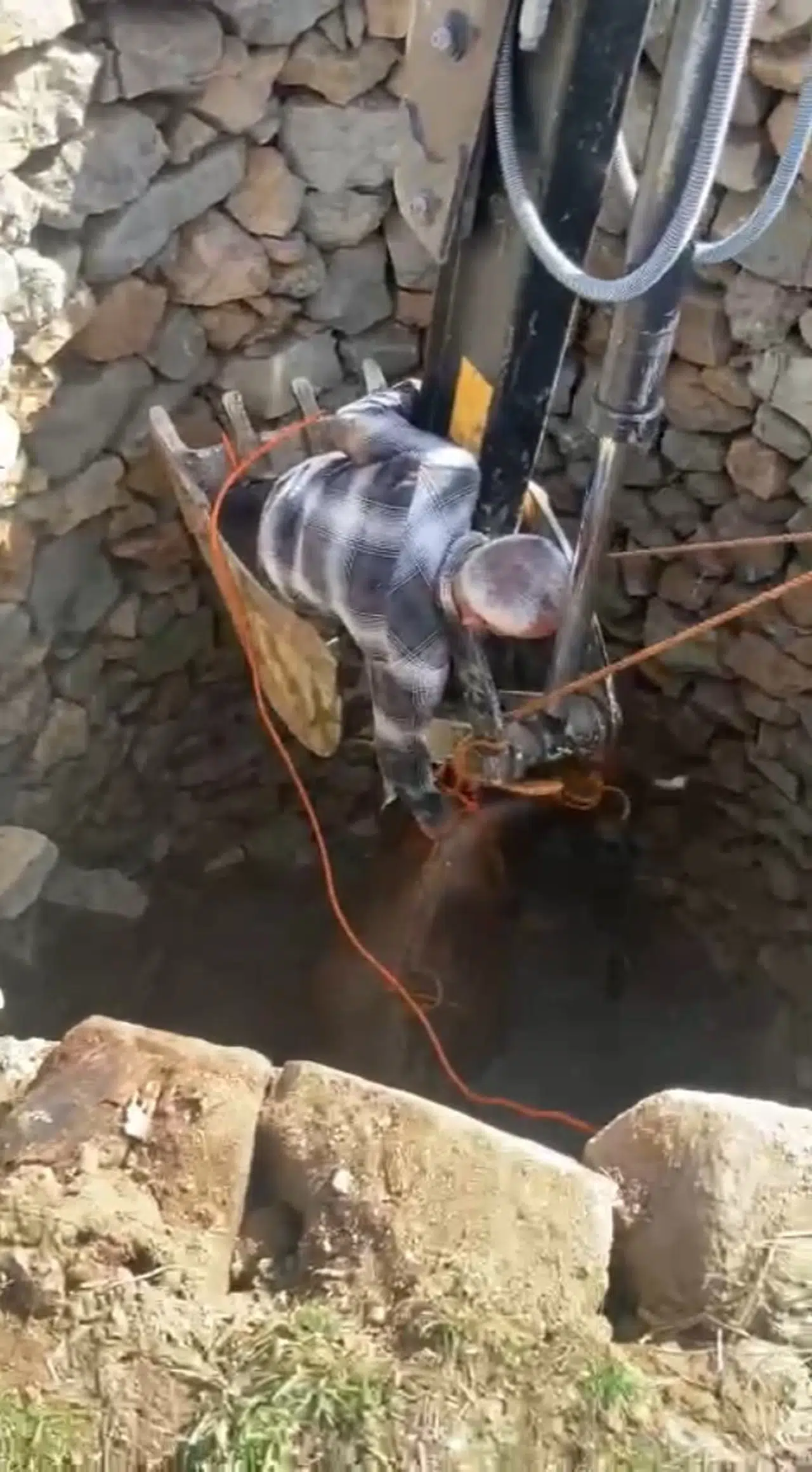 Bayram AYHAN/BATMAN, (DHA)- BATMAN’dın Kozluk ilçesinde 7 metre derinliğindeki su kuyusuna düşen inek, iş makinesine bağlanan halat yardımıyla çıkarıldı.