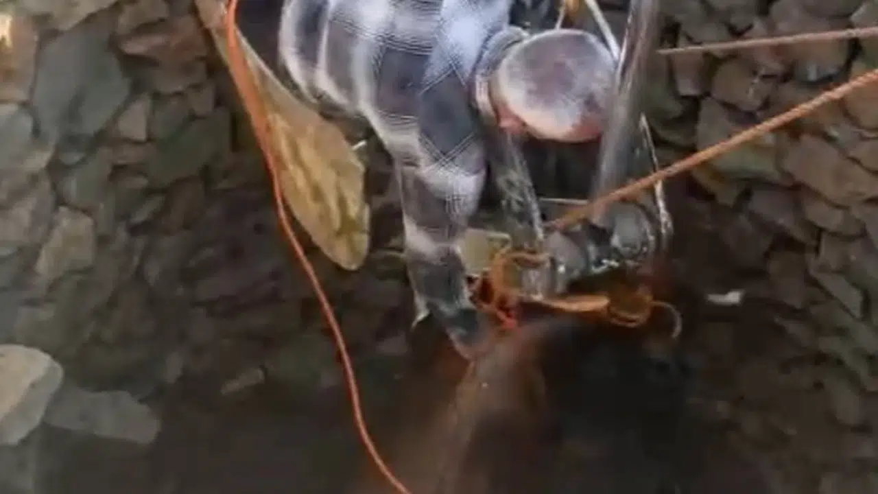 Olay, Kozluk ilçesi Bekirhan beldesinde meydana geldi. Otlaması için meraya bırakılan inek, 7 metre derinliğindeki su kuyusuna düştü. İnek, iş makinesine bağlanan halat yardımıyla 3 saatlik çalışma sonucu kuyudan çıkarılarak, sahibine teslim edildi.(DHA)