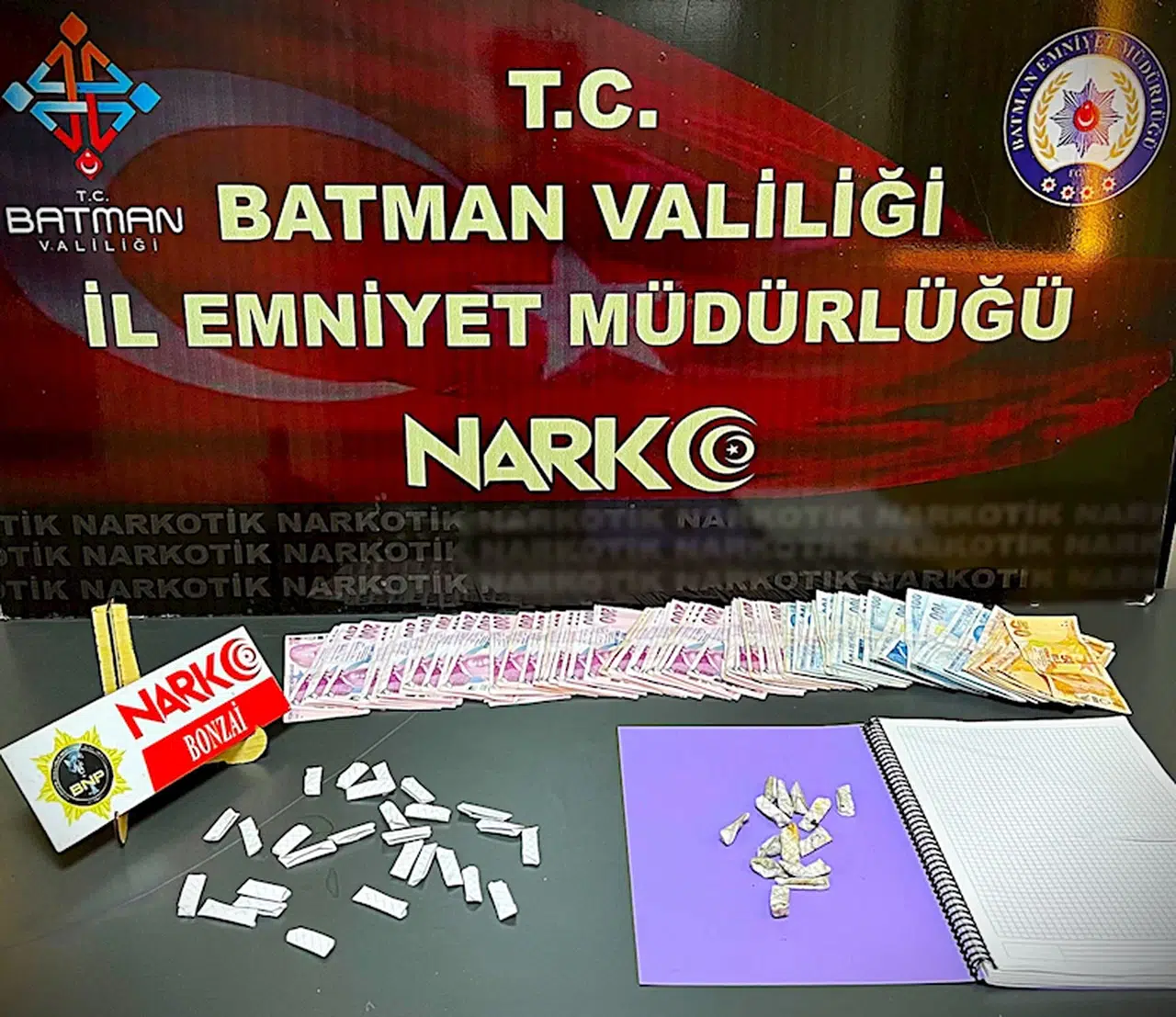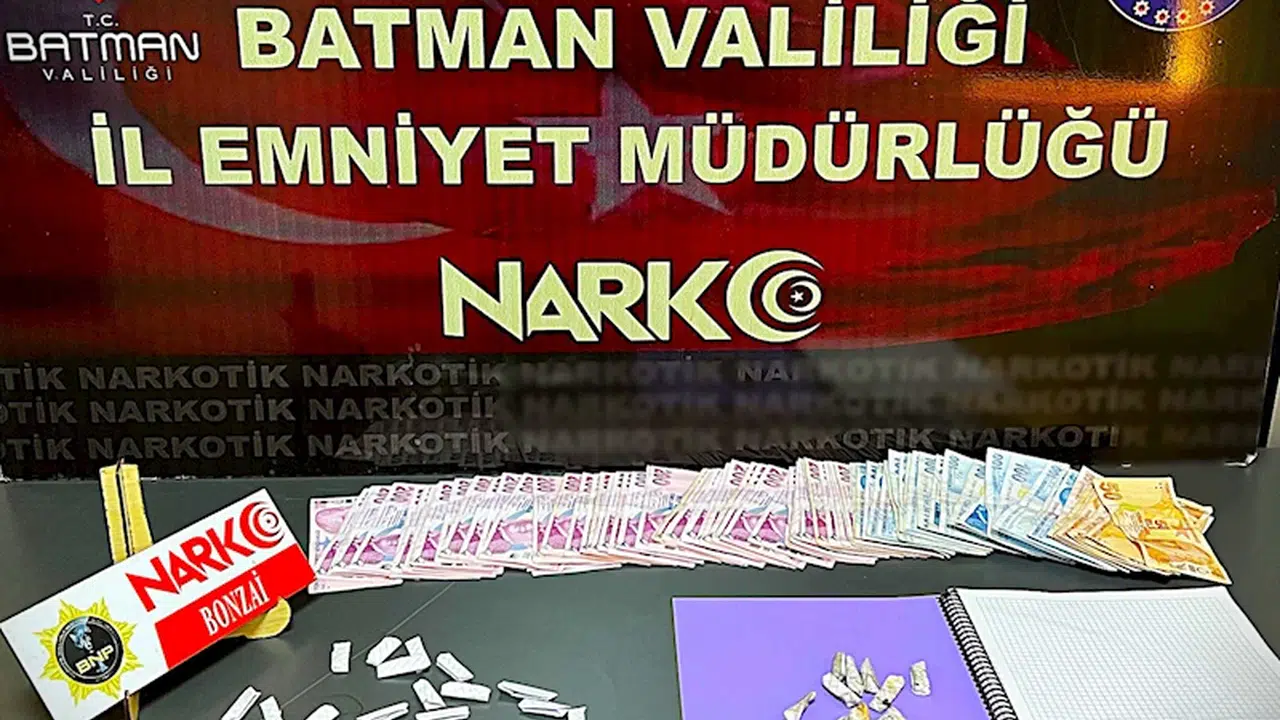 Bayram AYHAN/BATMAN, (DHA)- BATMAN'da 3 şüphelinin üst ve ev aramasında bir miktar uyuşturucu ve uyuşturucu satışından elde edildiği değerlendirilen 17 bin 550 lira ele geçirildi. 1 şüpheli tutuklandı.
