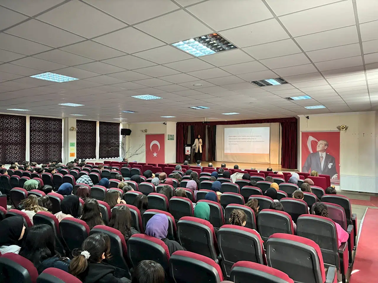 Bayat Toplum Sağlığı Başkanı Dr. Meliha Nur Özen, Şehit Yakup Kozan Anadolu İmam Hatip Lisesi Konferans Salonu'ndaki etkinlikte, Hitit Üniversitesi Bayat meslek Yüksekokulu öğrencilerine organ bağışının ne olduğu, nasıl bağışlandığı ve neden önemli olduğu konularında bilgi verdi.
