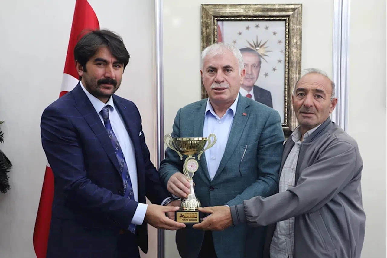 Geleneksel Spor Dalları Federasyonu Bayburt İl Temsilcisi Hacı Ali Dağ, Bayburt Atlı Spor Kulübü Başkanı Arif Köprücü ve sporcuları makamında ağırlayan Memiş, büyük bir başarıya imza atarak 1. lige yükselme gururunu Bayburt'a yaşattığı için Bayburt Atlı Spor Kulübü'nü tebrik etti.