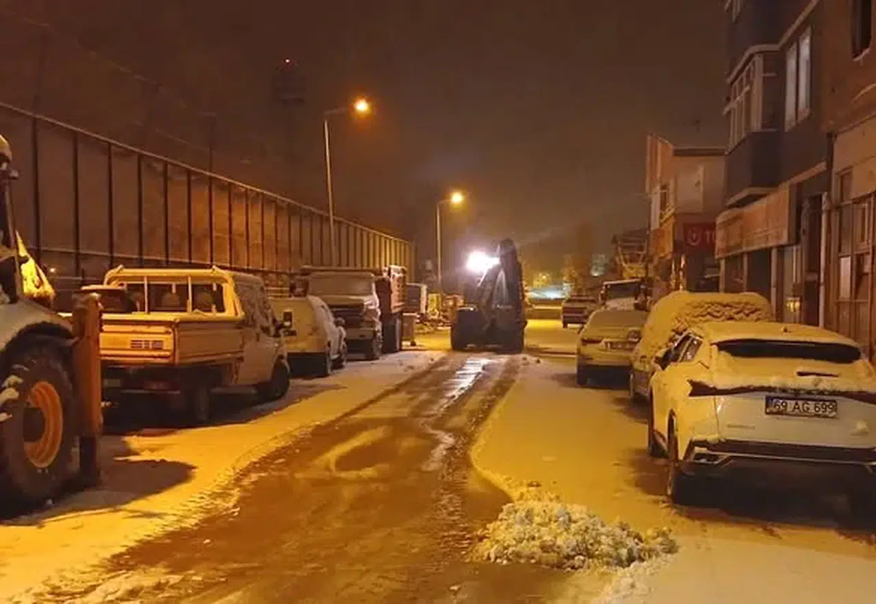 Bayburt’ta beklenen kar yağışının gece saatlerinde başlamasıyla birlikte Bayburt Belediyesi ekipleri kent genelinde teyakkuz haline geçti. Kar yağışının etkisini göstermesiyle birlikte sahaya çıkan ekipler, şehir genelinde yolların açık ve güvenli kalması için çalışmalarını aralıksız sürdürüyor.