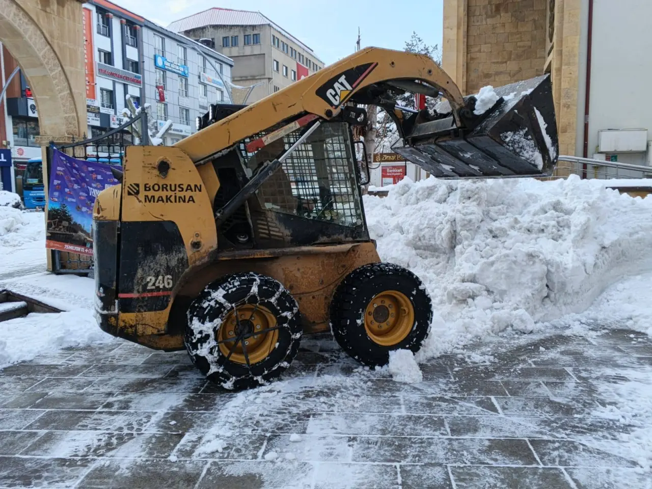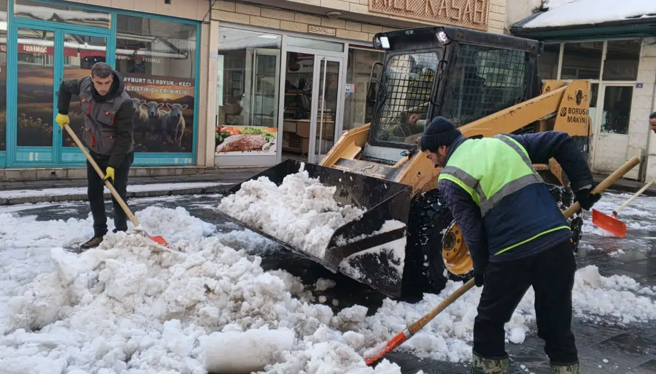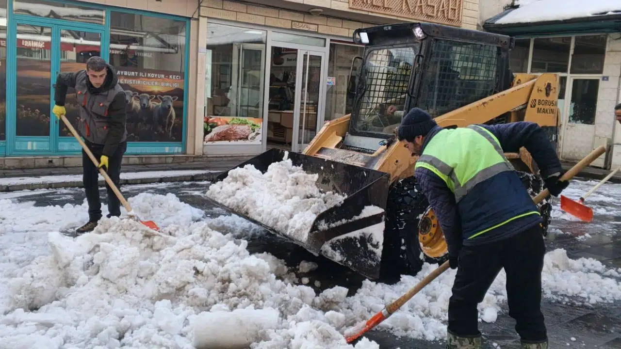 Bayburt Belediyesi, etkili olan kar yağışının ardından şehir genelinde temizlik çalışmalarına devam ediyor. Belediye ekipleri, vatandaşların günlük yaşamının aksamaması ve güvenli ulaşımın sağlanması amacıyla sahada yoğun mesai harcıyor.