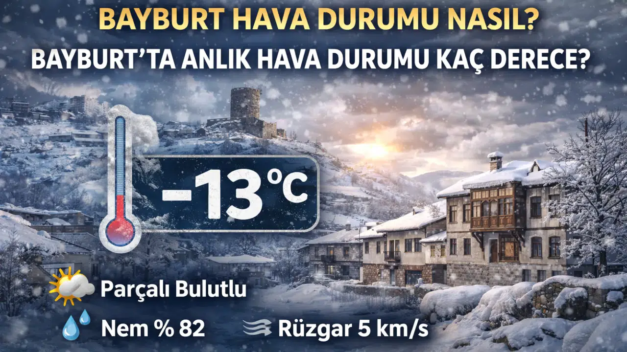 Meteorolojik verilere göre Bayburt’ta sabah saat 09.00 itibarıyla hava parçalı bulutlu ve sıcaklık -13°C olarak kaydedildi. Gün içinde en yüksek sıcaklığın -1 dereceye kadar çıkması beklenirken, gece saatlerinde termometreler -17 dereceyi gösterecek.