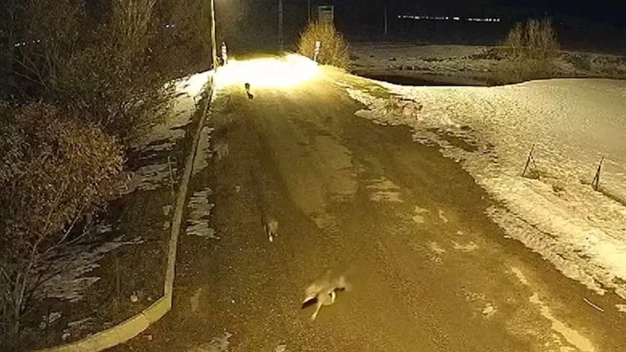 Kentin yüksek kesimleri yağan karla beyaza büründü, doğal yaşam alanlarında aç kalan kurtlar da yerleşim yeri yakınına inip yiyecek aradı. Merkez ilçeye bağlı Çayıryolu köyüne inen kurtların sürü halinde dolaşıp, yiyecek aradığı anlar, çevredeki güvenlik kamerasıyla görüntülendi. Görüntülerde; kurtların sürü olarak geldiği köyde dolaştığı, daha sonra da ormana girip kaybolduğu yer alıyor. (DHA)
