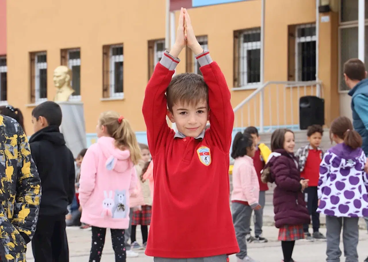 Şehit Nevzat Kaya İlkokulunda öğrenciler, öğretmenleri eşliğinde bahçedeki fiziksel etkinliklere katılırken İl Milli Eğitim Müdürlüğü yöneticileri ve etkinlikleri takip etti.