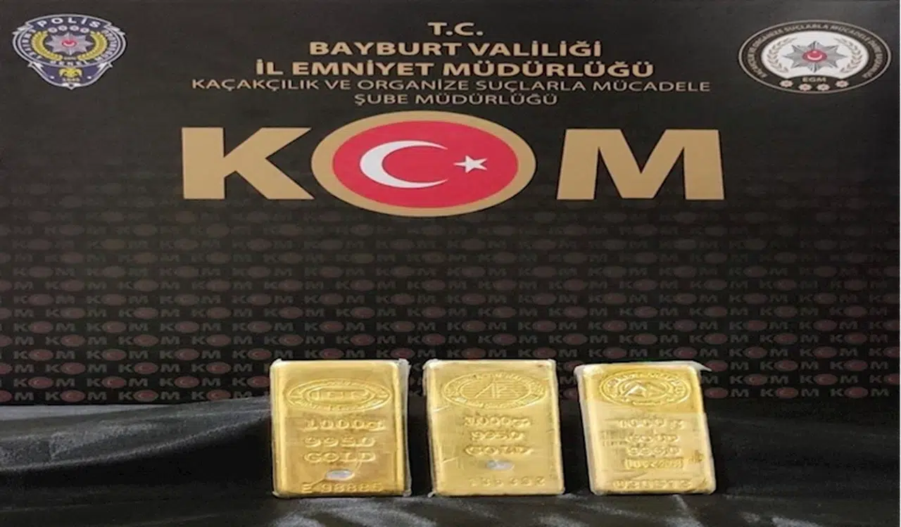 Bayburt'ta otomobilde 3 kilogram külçe altın ele geçirildi