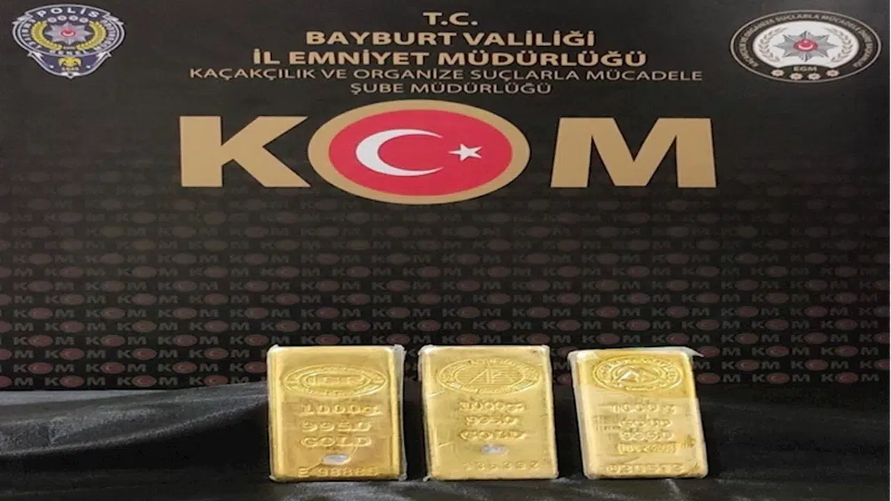 BAYBURT (AA) - Bayburt'ta, ülkeye yasa dışı yollarla getirildiği belirlenen 3 kilogram külçe altın ele geçirildi.