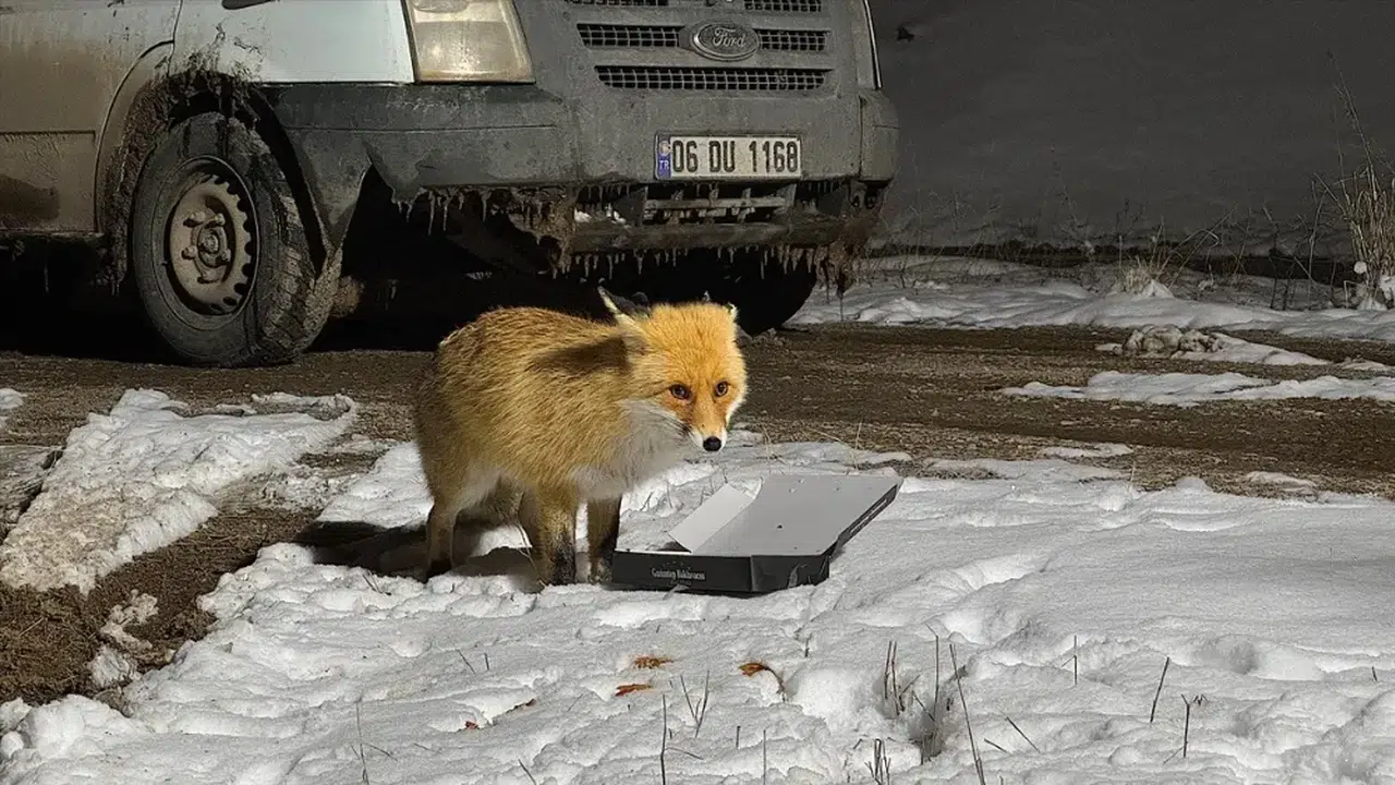 Hemen hemen her gün geç saatlerde bekçi kulübesi önüne gelen tilki, Budak'ın verdiği yiyeceklerin bir kısmıyla beslenip bir kısmını da dağlık alana taşıyor.