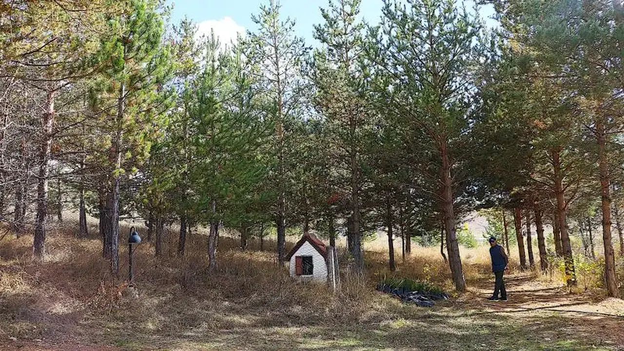 Daha sonra evinin de içinde bulunduğu yaklaşık 60 dönümlük araziyi ağaçlandırmaya başlayan Özkan, 1700 rakımdaki köyün kurak iklimi ve soğuk havasına rağmen 49 yılda diktiği 3 bin fidanı büyütmeyi başardı.
