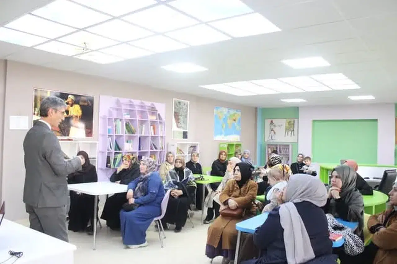Bayburt Şehit Nevzat Kaya İlkokulu'nda, Türkiye Yüzyılı Maarif Modeli kapsamında düzenlenen "Ebeveyn Okulu" etkinlikleri, velilerin eğitime katılımını artırmak amacıyla devam ediyor.