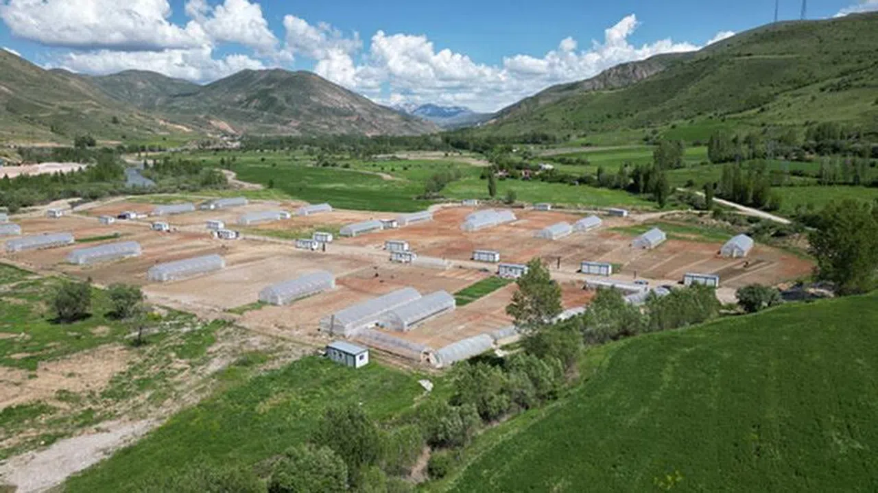 Allah razı olsun, bizim için burayı yaptılar. Burada 20 aile var, herkesin serası ve dışarıda ekim yaptığı alanlar var. Bu yıl yağmurlardan dolayı ekim için geç kaldık. Ama seralarımızı ektik. Yakın zamanda hasat bekliyoruz. Burada yaklaşık 20 çeşit ürün yetiştiriyoruz.