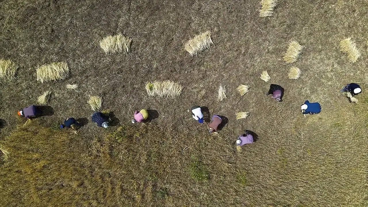 Hasat zamanı gelmesine rağmen bölgeye ulaşacak uygun tarım makinesi bulamayan Çil'in yardımına köylü kadınlar koştu.