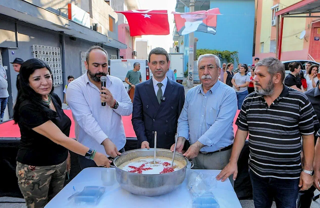 Bayraklı Belediyesi, Muharrem ayının manevi değerlerini yaşatmak ve bu özel günün anlamını tüm ilçeye ulaştırmak için birlikte, bereket ve dayanışmanın simgesi aşure dağıtımı gerçekleştirdi. Bu kapsamda, Sevgi Yolu, Haşim İşcan Caddesi, Değirmen Kafe ve Aşık Mahzuni Şerif Kültür Merkezi ve Cemevi’nde toplam 4 bin kişilik aşure ikram edildi. Bayraklı Belediye Başkanı İrfan Önal, dağıtım noktalarını ziyaret ederek vatandaşlarla buluştu, sohbet edip, dualar eşliğinde aşure kardı ve ilçe sakinlerine ikram etti. Bu kapsamda Aşık Mahzuni Şerif Kültür Merkezi ve Cemevi’nde de aşure ve Kerbela Şehitlerini anma töreni düzenlendi. Başkan Önal’a meclis üyeleri de eşlik etti. Sahnede sanatçılar tarafından seslendirilen deyişlerin ardından Cemevi Dedesi Cafer Kaygusuz’un okuduğu dua eşliğinde aşure karıldı ve dağıtıldı.