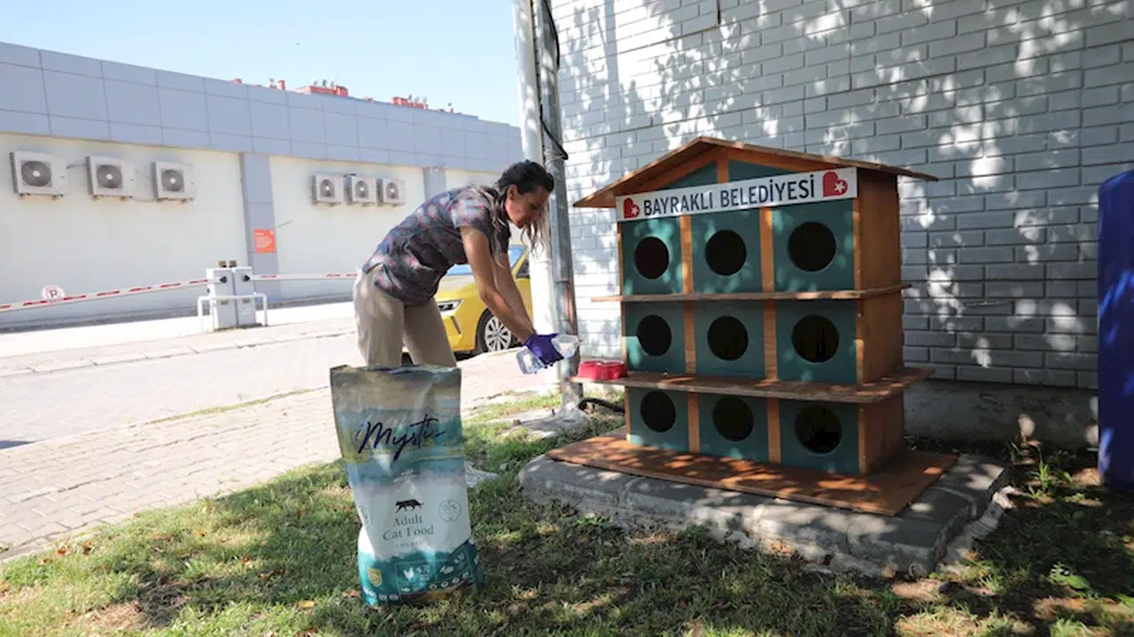 İZMİR, (DHA) - BAYRAKLI Belediyesi, aşırı sıcaklar nedeniyle yiyecek ve içecek bulmakta zorlanan sokak hayvanları için 'Can Dostlarımıza Bir Kap Su' kampanyası başlattı.