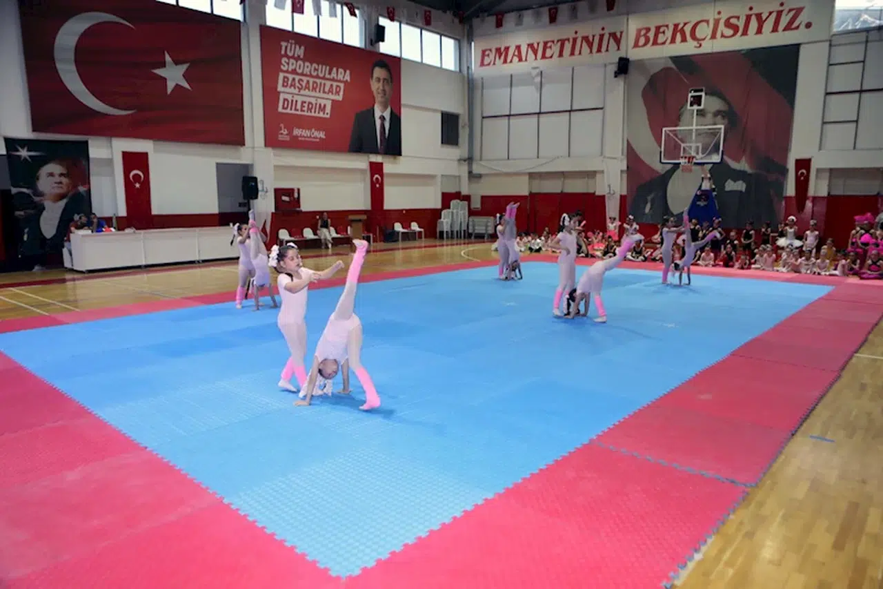 İZMİR, (DHA)-BAYRAKLI Belediyesi'nin düzenlediği jimnastik ve bale kurslarına katılan 476 sporcu, yıl boyunca öğrendikleri becerileri düzenlenen etkinlikte sahneledi. Bayraklı Belediye Başkanı İrfan Önal, "Çocuklarımızın ve gençlerimizin gelişimine katkı sağlamak için imkanlarımız dahilinde desteklerimizi sürdüreceğiz" dedi.