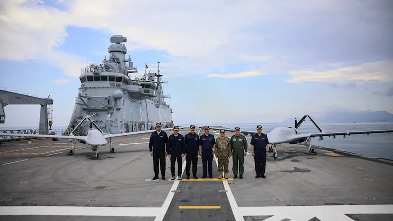 Türk Deniz Kuvvetleri tarafından 6-17 Mayıs tarihlerinde denizde, havada ve karada sürdürülen 'Deniz Kurdu 2/2025' tatbikatının 'Seçkin Gözlemci Günü' (SGG) kapsamında TCG Anadolu çok maksatlı amfibi gemisinde bulunan Kara Kuvvetleri Komutanı Orgeneral Selçuk Bayraktaroğlu, Hava Kuvvetleri Komutanı Orgeneral Ziya Cemal Kadıoğlu, Deniz Kuvvetleri Komutanı Oramiral Ercüment Tatlıoğlu, Savunma Sanayii Başkanı Haluk Görgün, BAYKAR Yönetim Kurulu Başkanı Selçuk Bayraktar açıklama yaptı.