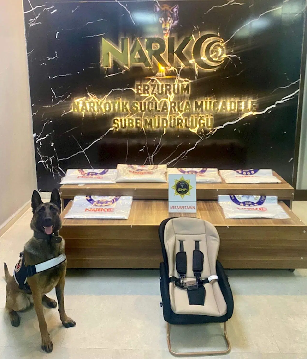 Erzurum Emniyet Müdürlüğü Narkotik Suçlarla Mücadele Şube Müdürlüğü ekipleri, yaptıkları aramada bebek arabası içinde zulalanmış 3 kilo 530 gram metamfetamin maddesi ele geçirdi. Uyuşturucu ile ilgili gözaltına alınan S.Ş. (28) ve O.B. (33) çıkarıldıkları mahkemede tutuklandı. (DHA)