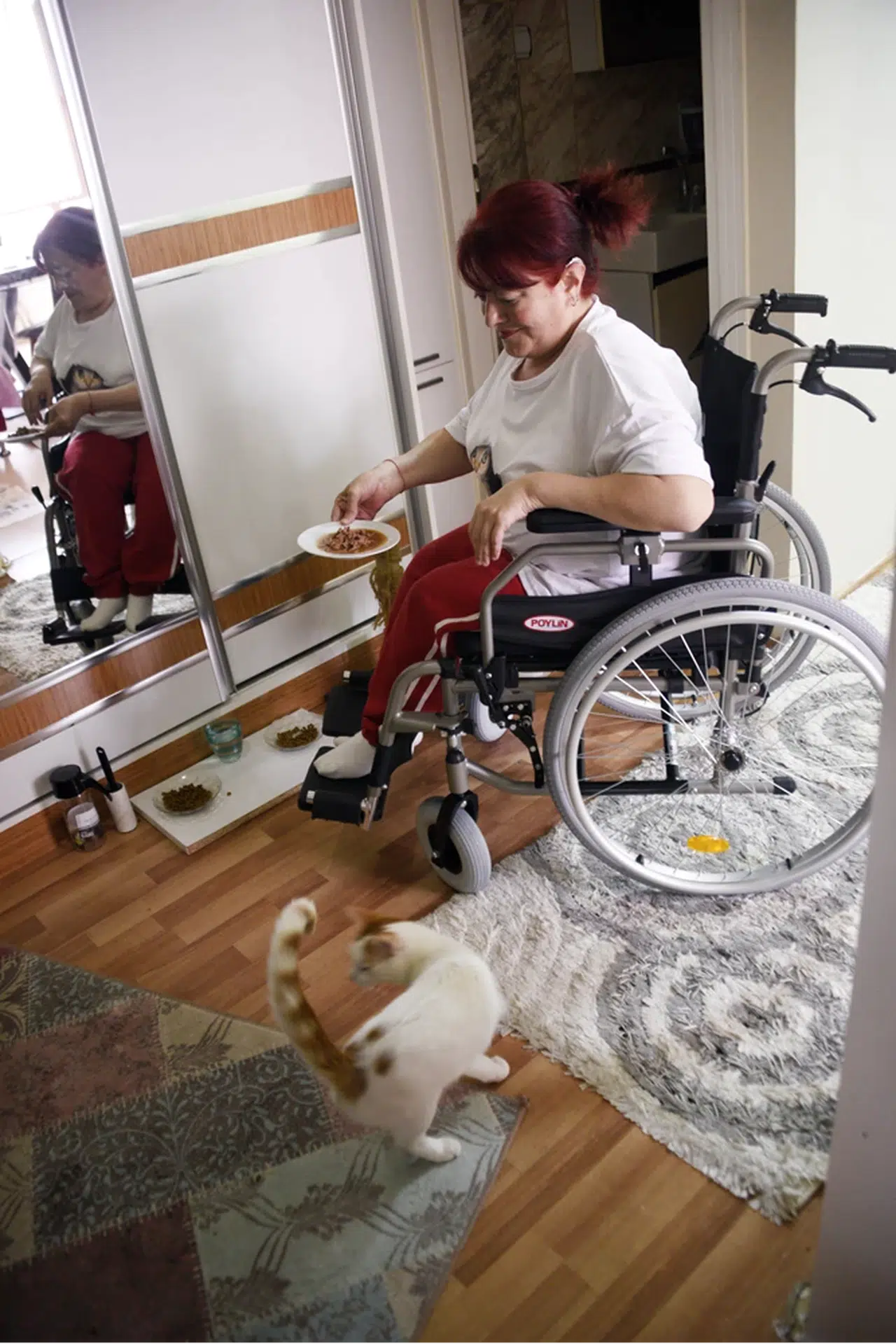 Bedensel engelli kadın, hasta kedisi "Sütlaç"ı iyileştirmek için bankadan kredi çekti