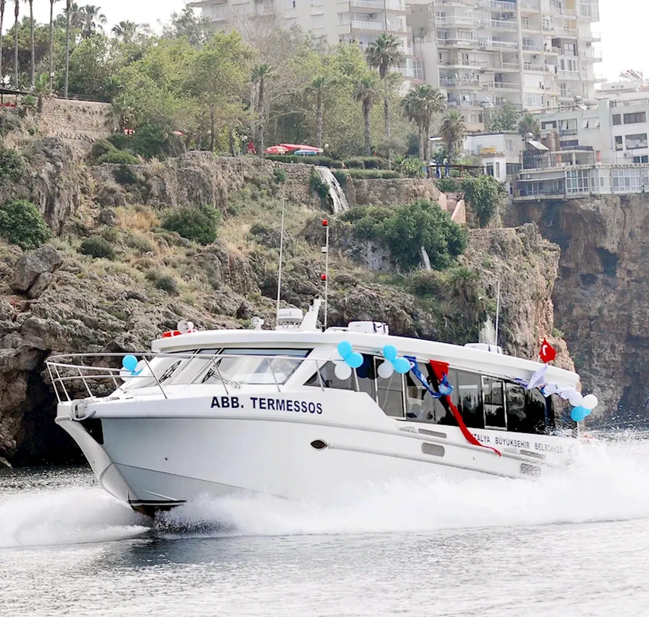 Antalya'da 2009 yılında, Büyükşehir Belediyesi'nin Deniz Ticaret Odası Antalya Şubesi ile birlikte hazırladığı proje kapsamında, deniz yolcu taşımacılığının geliştirilmesi amacıyla üç yolcu gemisi satın alındı. Bugünkü döviz kurlarıyla tanesi yaklaşık 10 milyon TL’ye mal olan deniz otobüslerine 'Termessos', 'Aspendos' ve 'Olympos' isimleri verildi. Açılış töreni sonrası deniz otobüsleri Kaleiçi Yat Limanı ile Kemer Marina arasında yolcu taşımacılığına başladı.